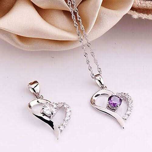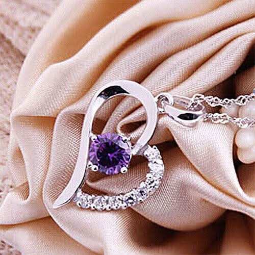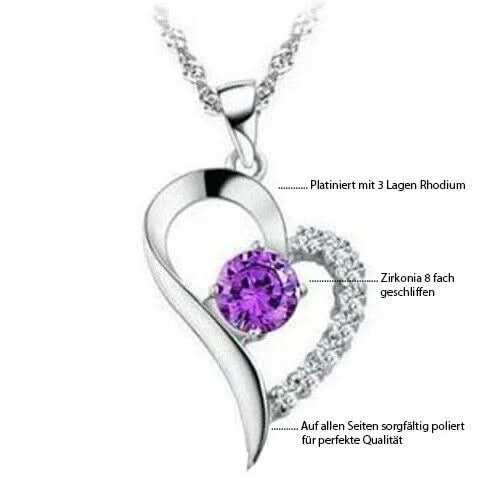 Herz Anhänger violetter Zirkonia Crystal mit Singapurkette 925 Silber