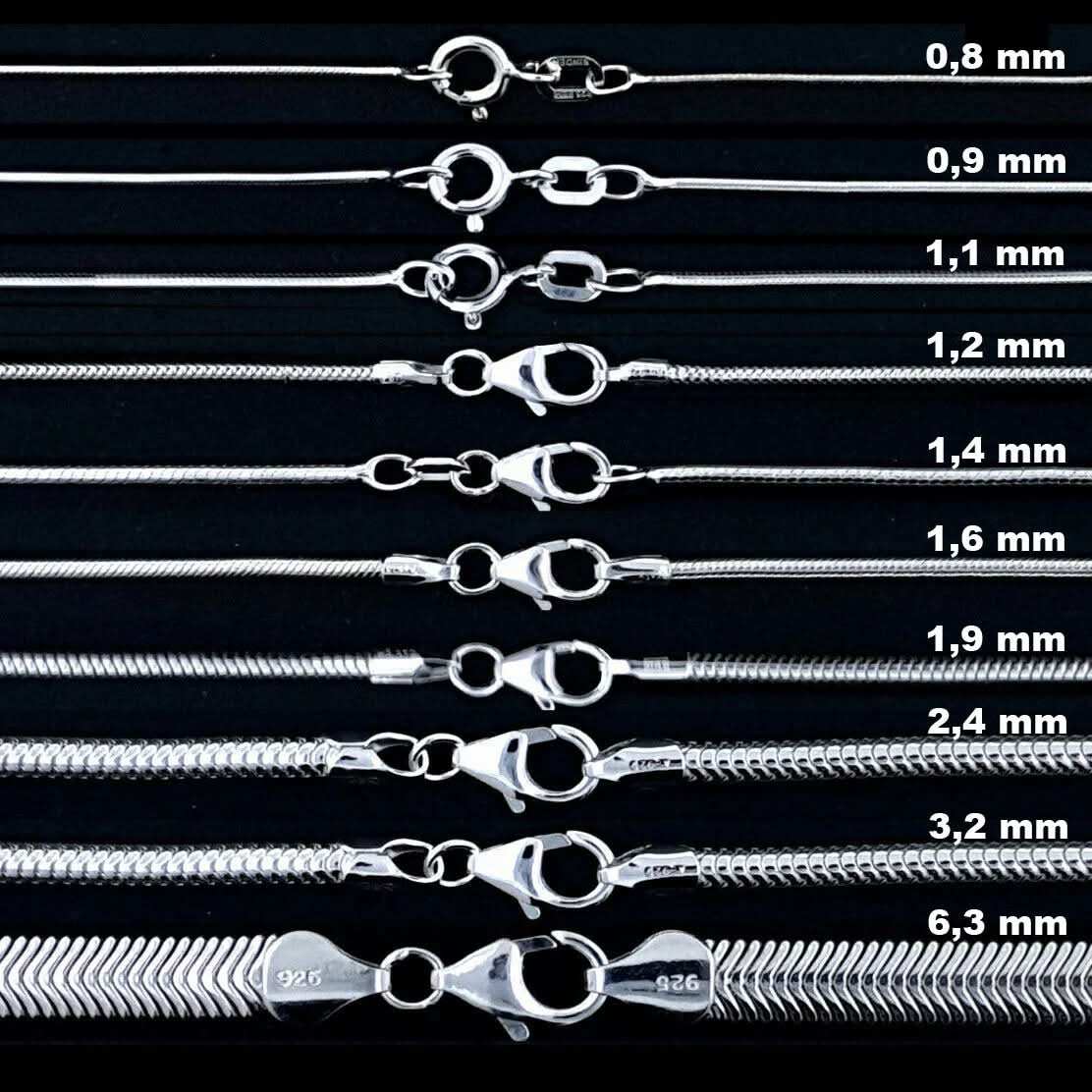 925 Silber Schlangenketten rund, Breite: 1,4 mm Karabiner Verschluss