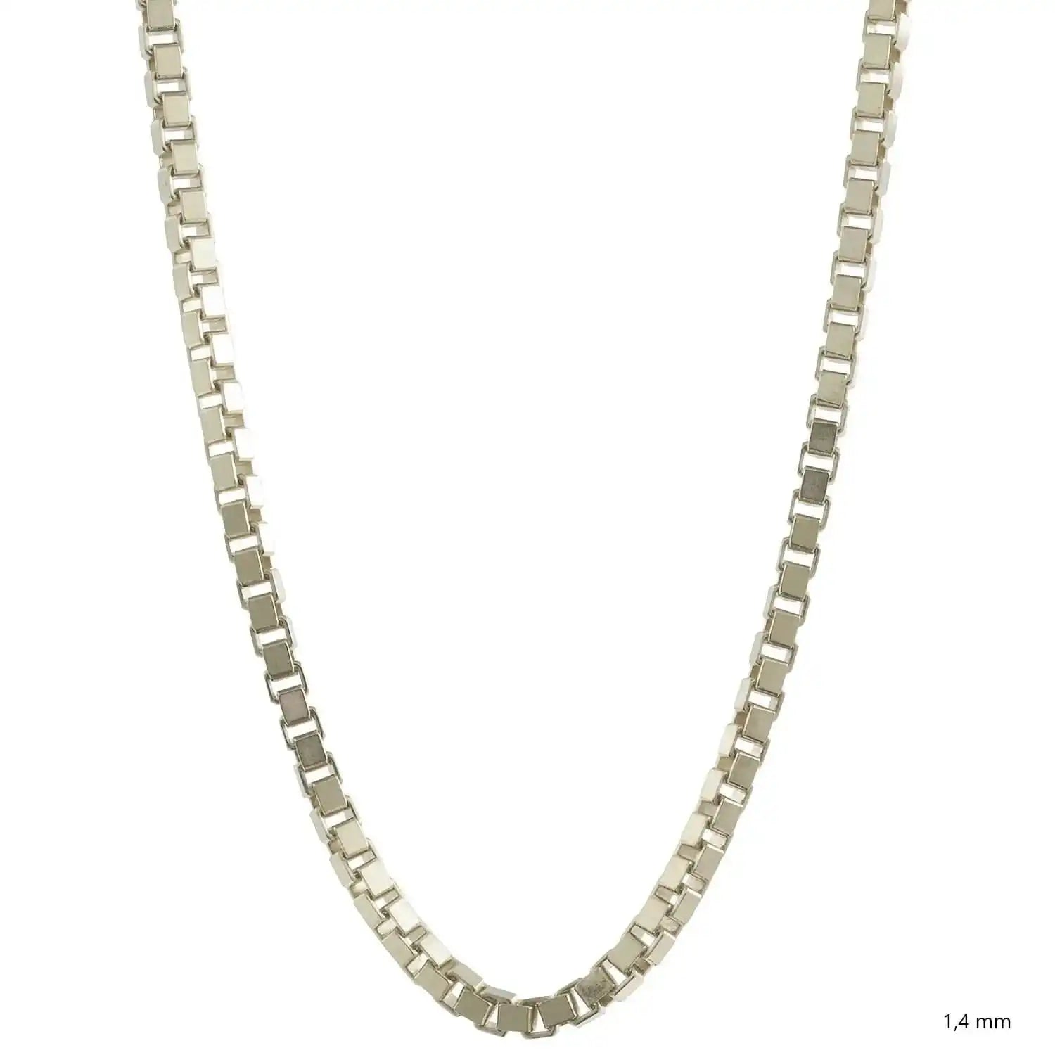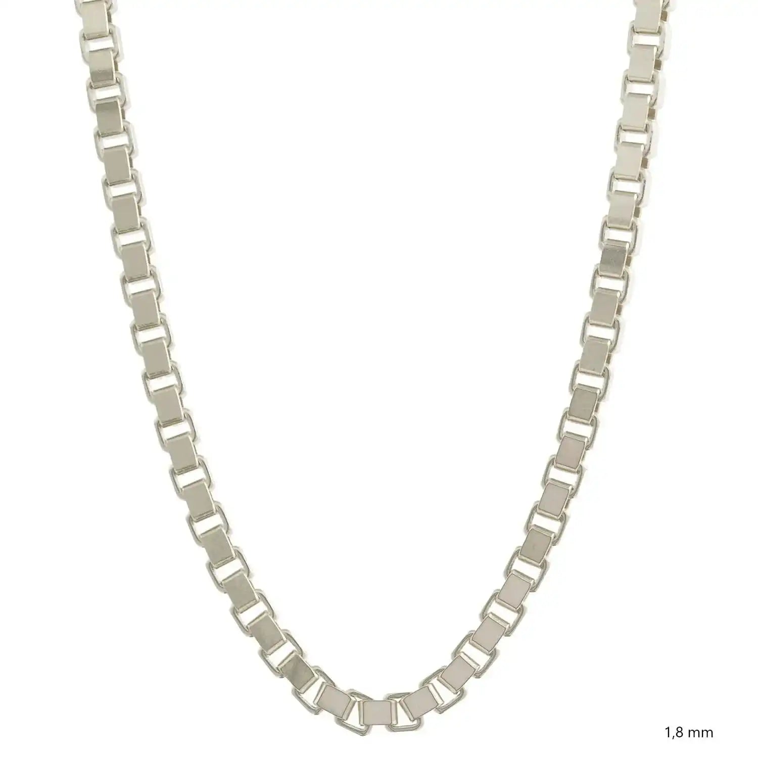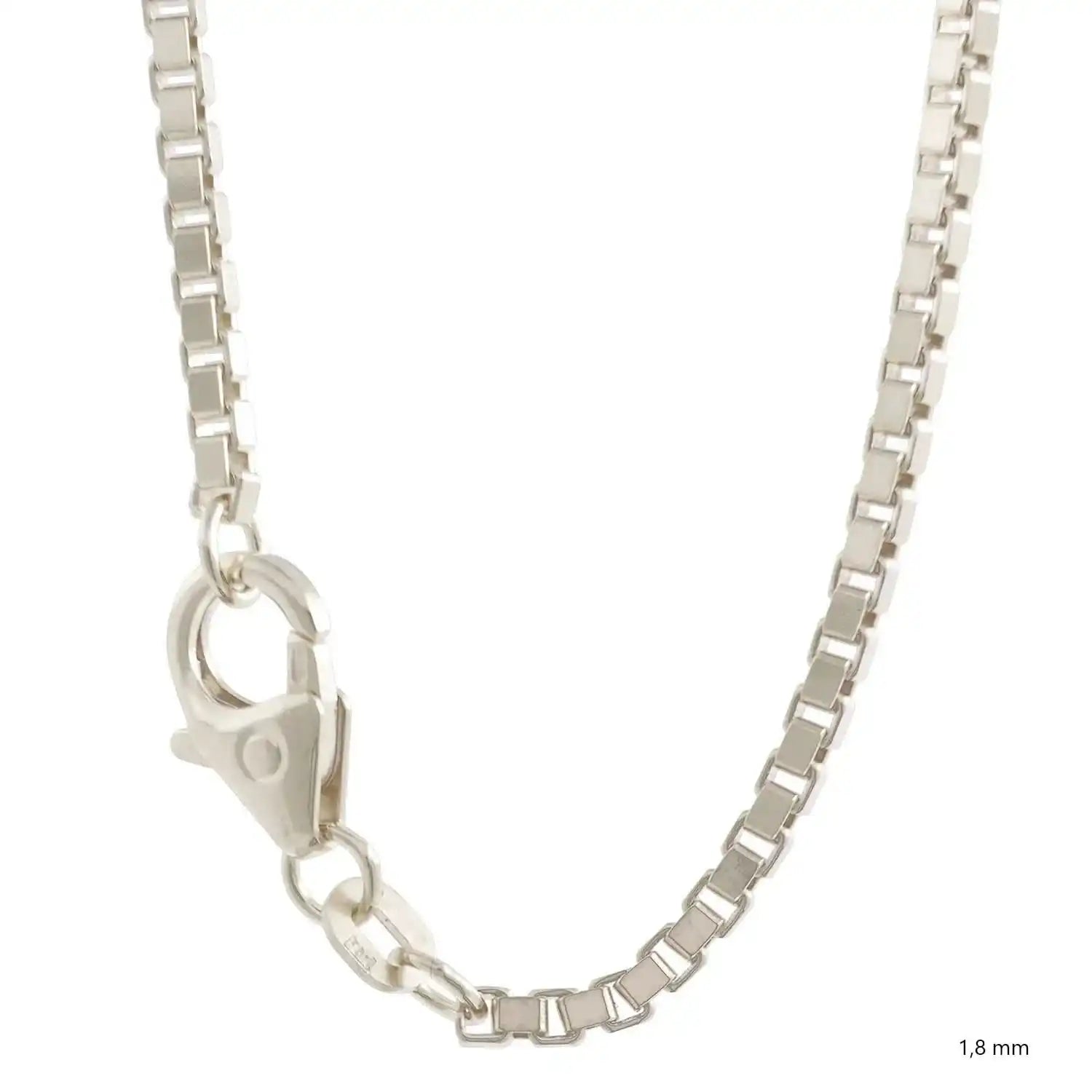 Die Venetianerkette begeistert durch ihre geometrische Einfachheit. Sie besteht aus quadratischen kleinen Kettengliedern und ist sehr flexibel. Die Venetianerkette ist eine robuste, klassische, geschmeidige und regelmässige Kette, die sowohl von Frauen als auch von Männern mit und ohne Anhänger getragen wird. Bei unseren Ketten handelt es sich um eine solide, edle, massive und sehr hochwertige Ausführung in Juwelierqualität. Natürlich sind die Ketten gestempelt. Alle die Ketten sind durch eine Oberflächenbehandlung anlaufgeschützt und danach hochglanzpoliert für ein noch edleres Erscheinungsbild.