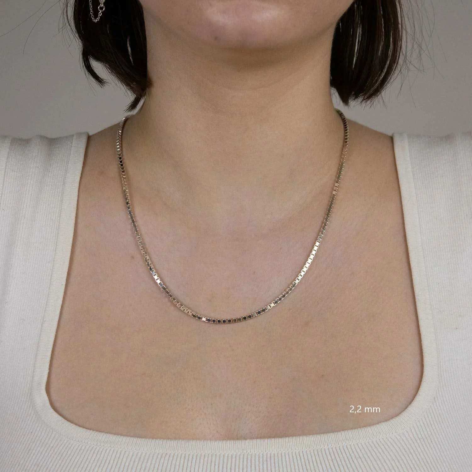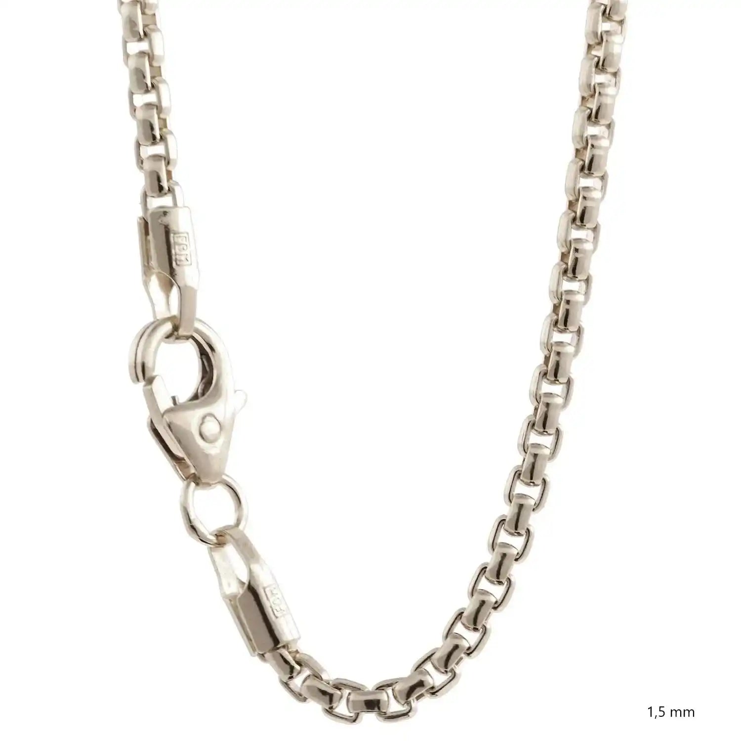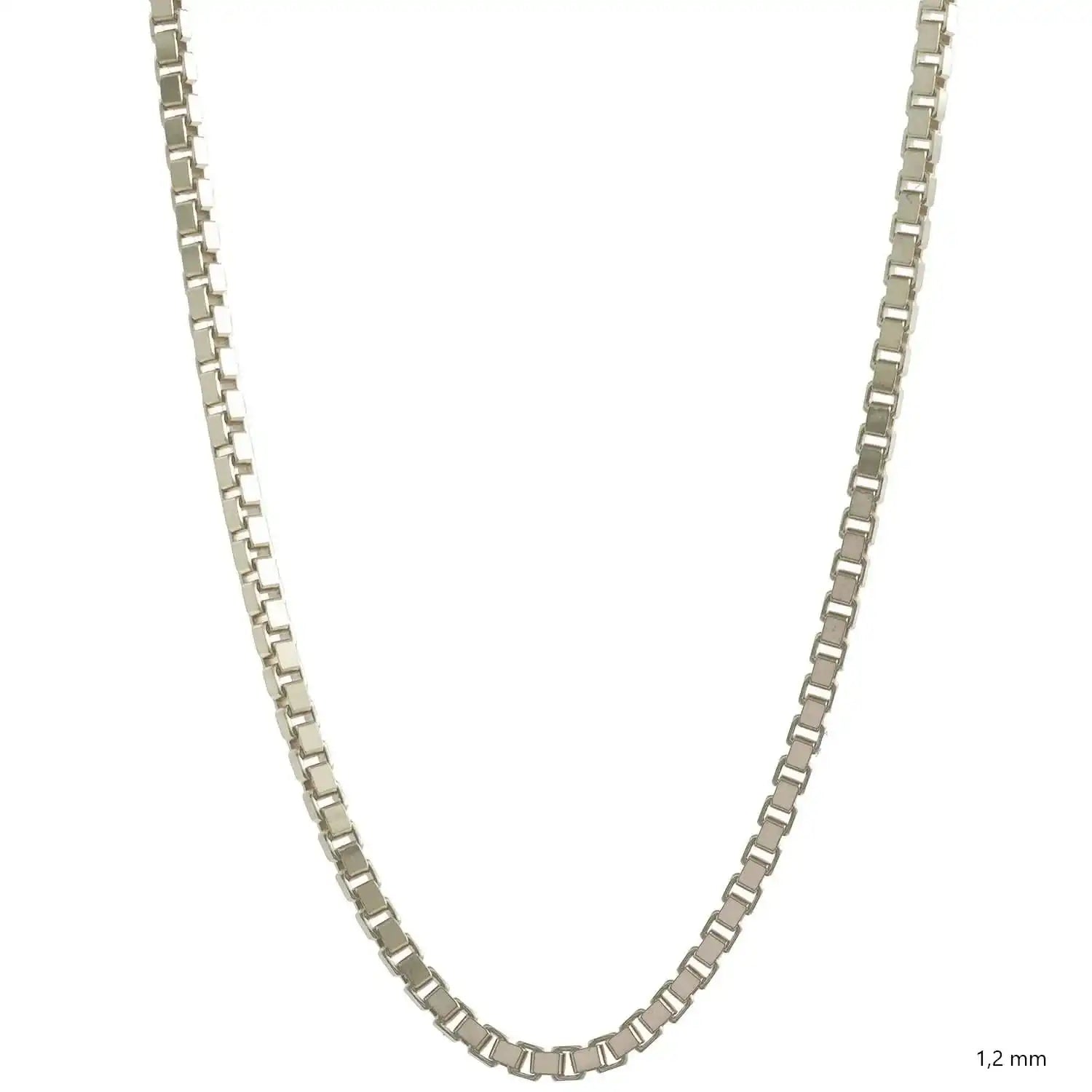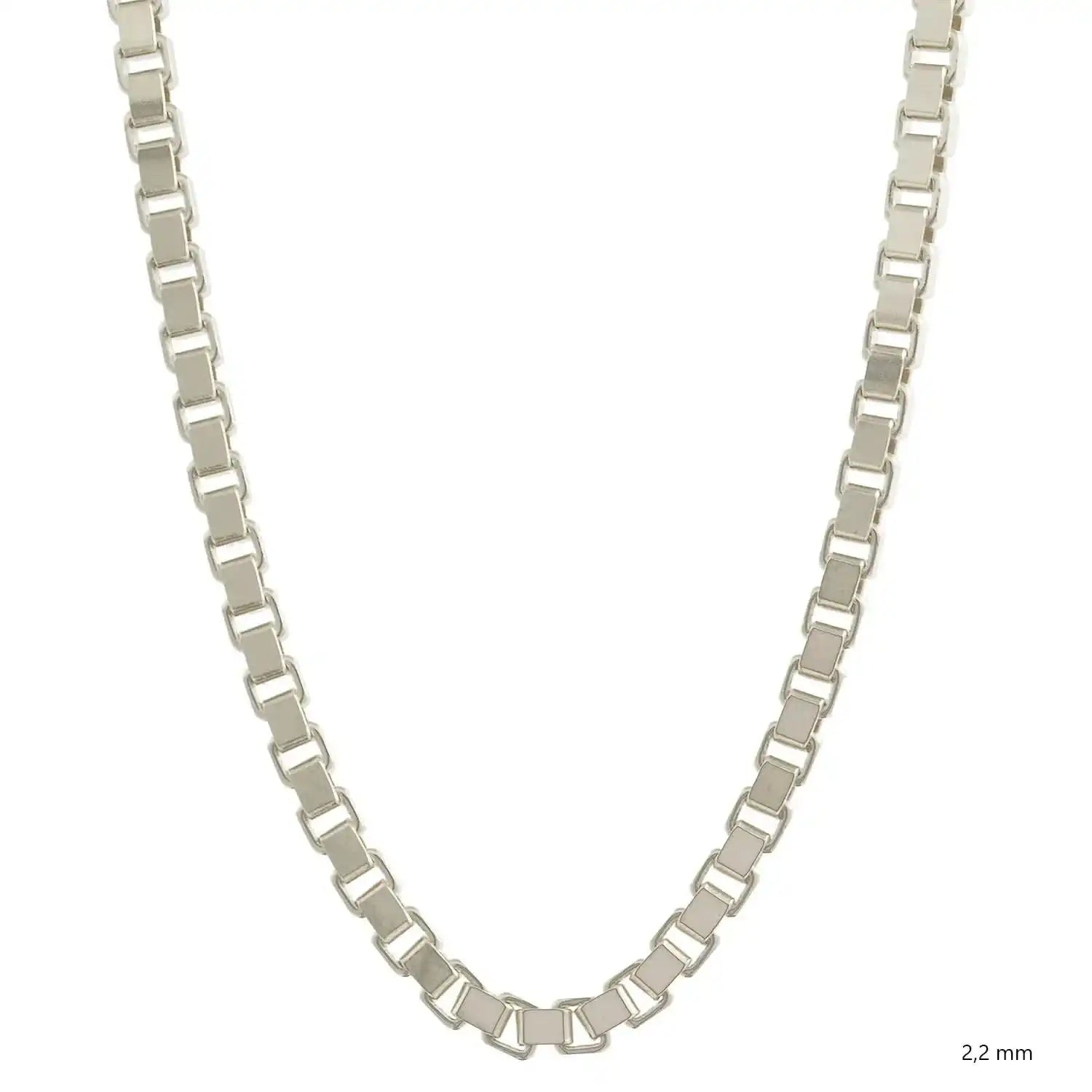Die Venetianerkette begeistert durch ihre geometrische Einfachheit. Sie besteht aus quadratischen kleinen Kettengliedern und ist sehr flexibel. Die Venetianerkette ist eine robuste, klassische, geschmeidige und regelmässige Kette, die sowohl von Frauen als auch von Männern mit und ohne Anhänger getragen wird. Bei unseren Ketten handelt es sich um eine solide, edle, massive und sehr hochwertige Ausführung in Juwelierqualität. Natürlich sind die Ketten gestempelt. Alle die Ketten sind durch eine Oberflächenbehandlung anlaufgeschützt und danach hochglanzpoliert für ein noch edleres Erscheinungsbild.