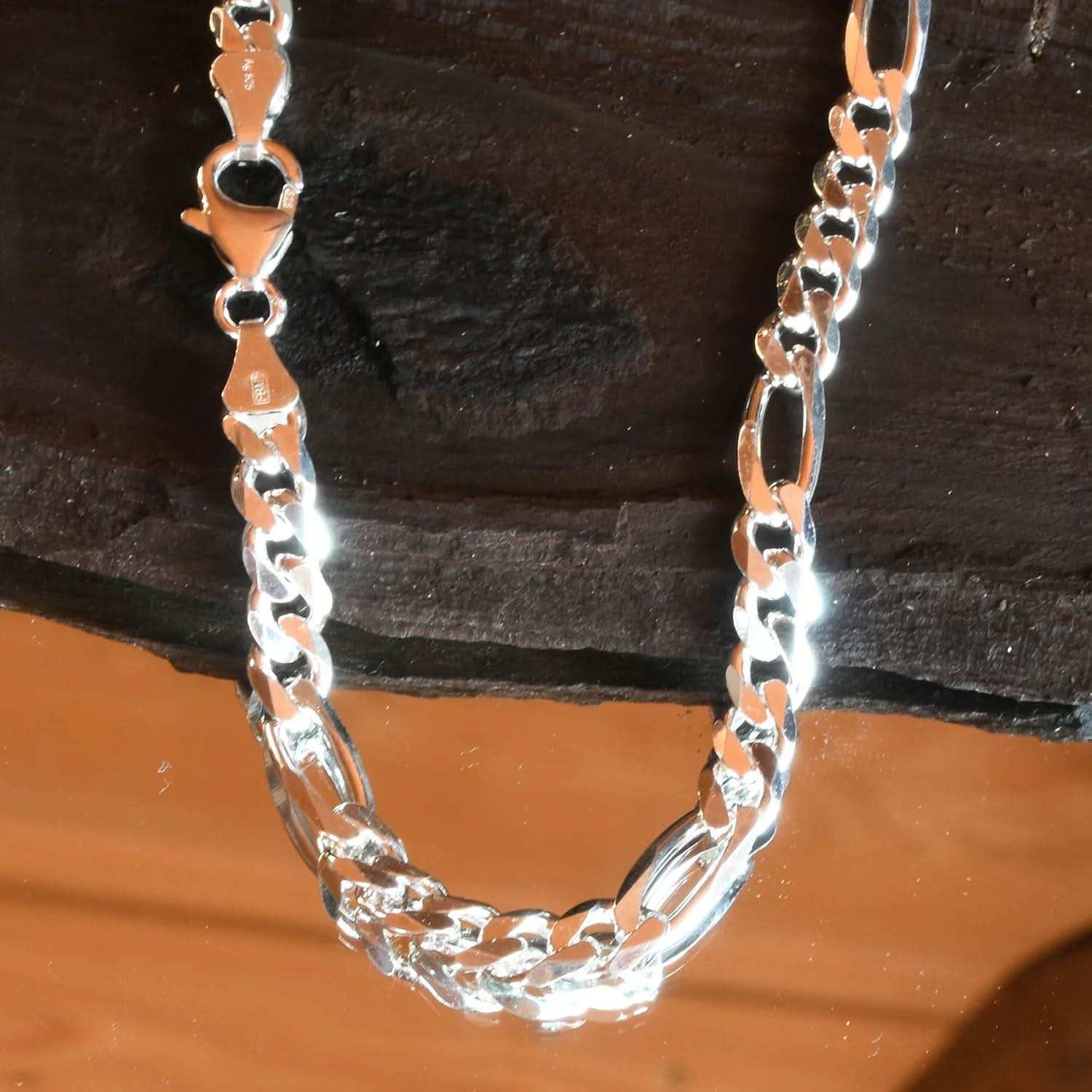 Edle massive Silberkette Figarokette Breite 5,7 mm Halskette aus 925 Sterlingsilber von höchster Qualität – Made in Germany.