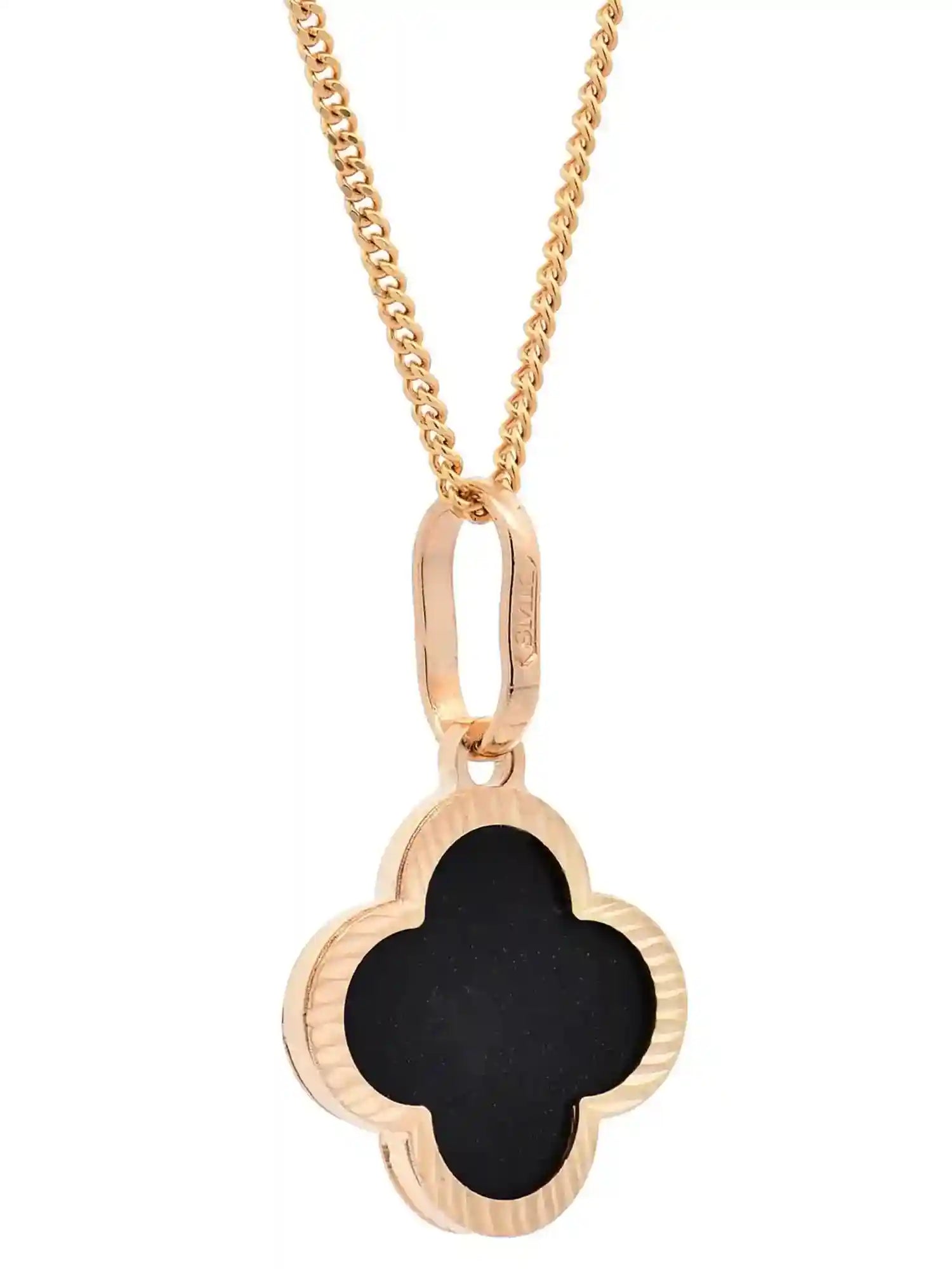 Halskette mit Anhänger Blume klein Onyx aus 585 - 14 Karat Gelbgold