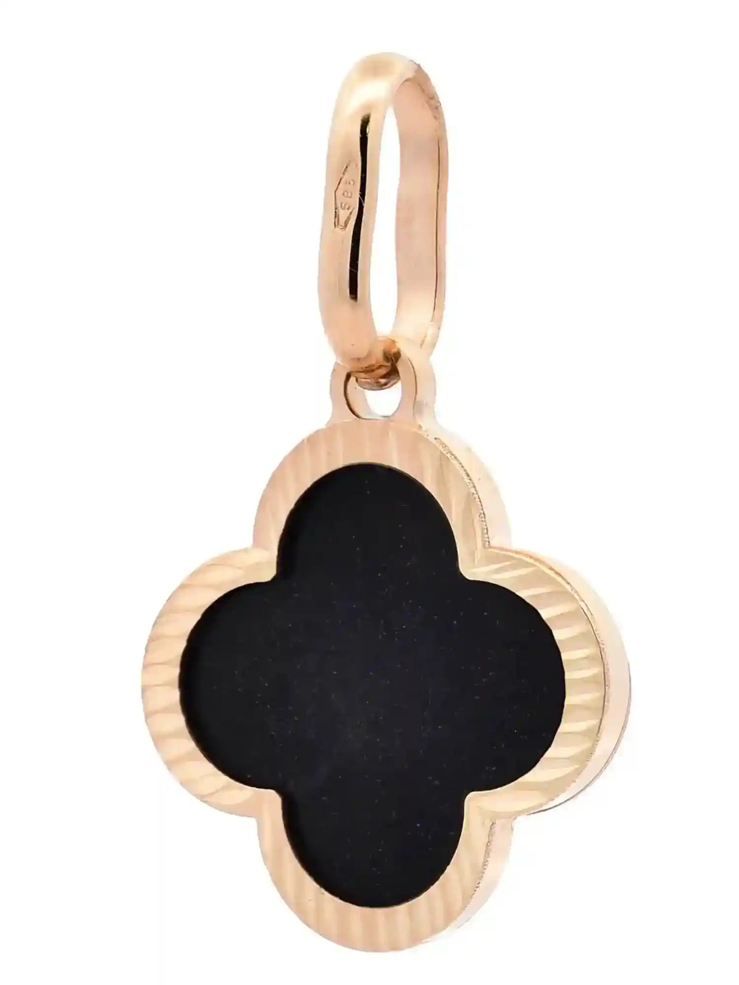 Anhänger aus 585 - 14 Karat Gelbgold, Motiv Blume klein Onyx. Der Goldanhänger ist hochglanzpoliert, sehr filigran gearbeitet und wunderschön im Detail.