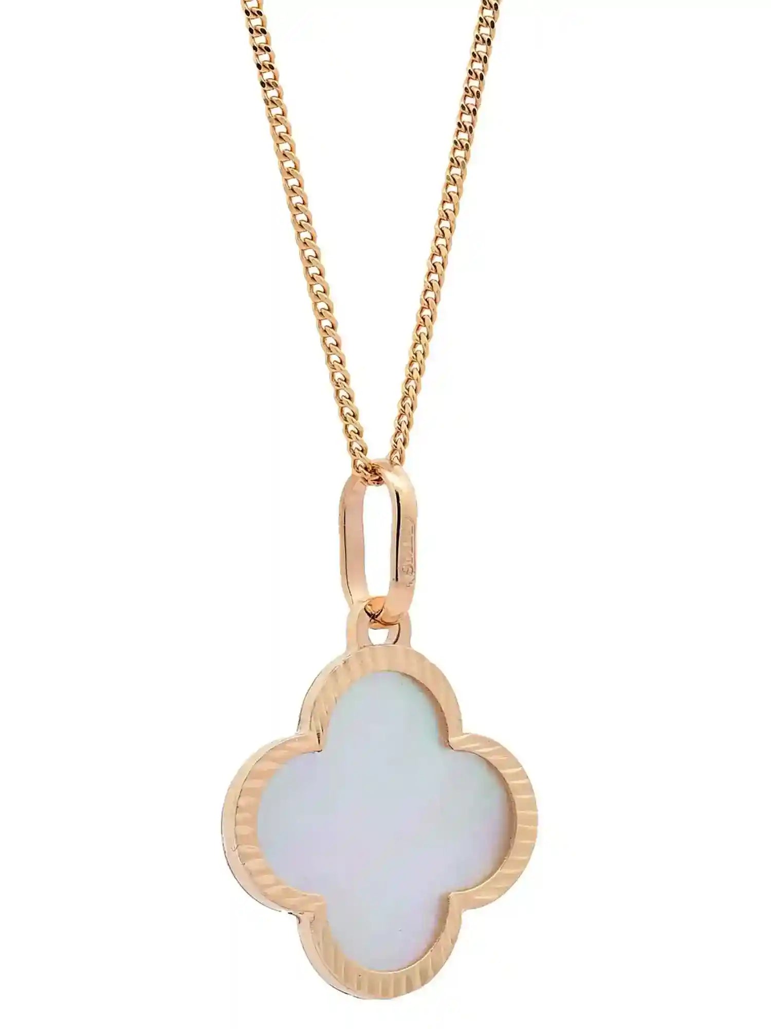 Halskette mit Anhänger Blume Perlmutt aus 585 - 14 Karat Gelbgold