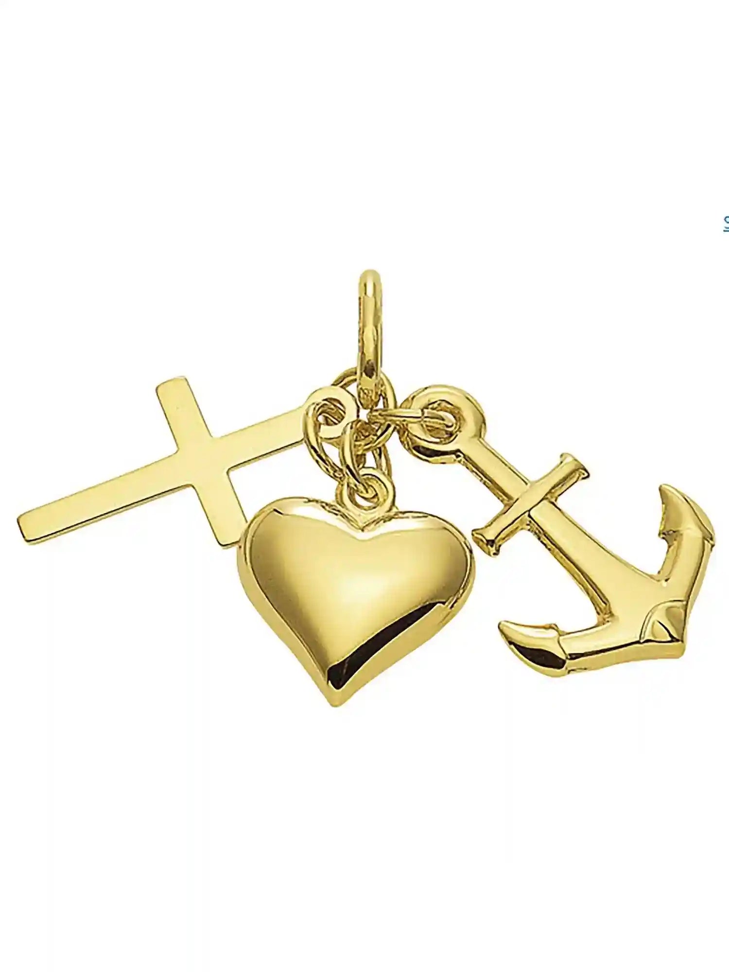 Hochwertiger Gold Anhänger Kettenanhänger Glaube-Liebe-Hoffnung aus massiv 585 - 14 Karat Gelbgold.