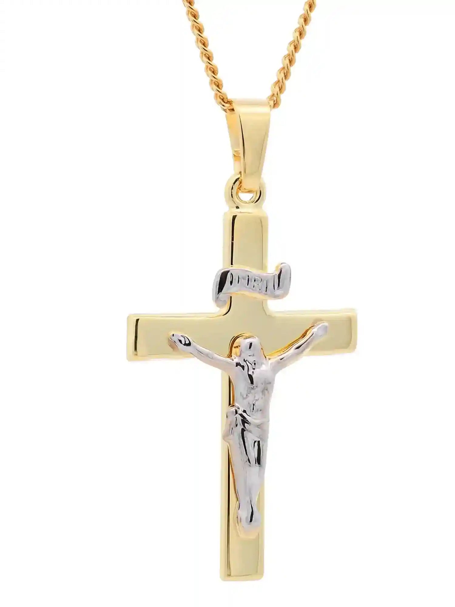 Hochwertiger Gold Anhänger Kettenanhänger Kreuz Korpus aus massiv 333 - 8 Karat Gelbgold rhodiniert.
