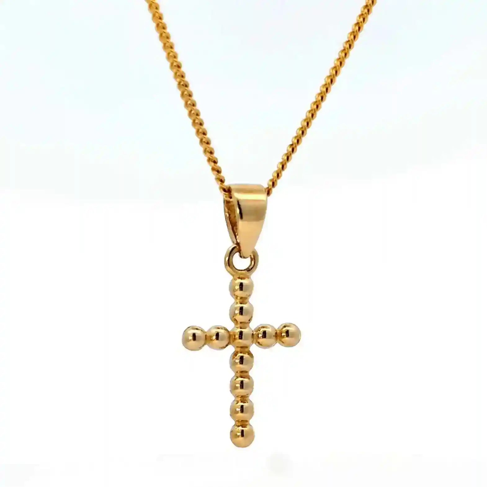 Halskette mit Anhänger Kreuz Kügelchen aus 585 - 14 Karat Gelbgold