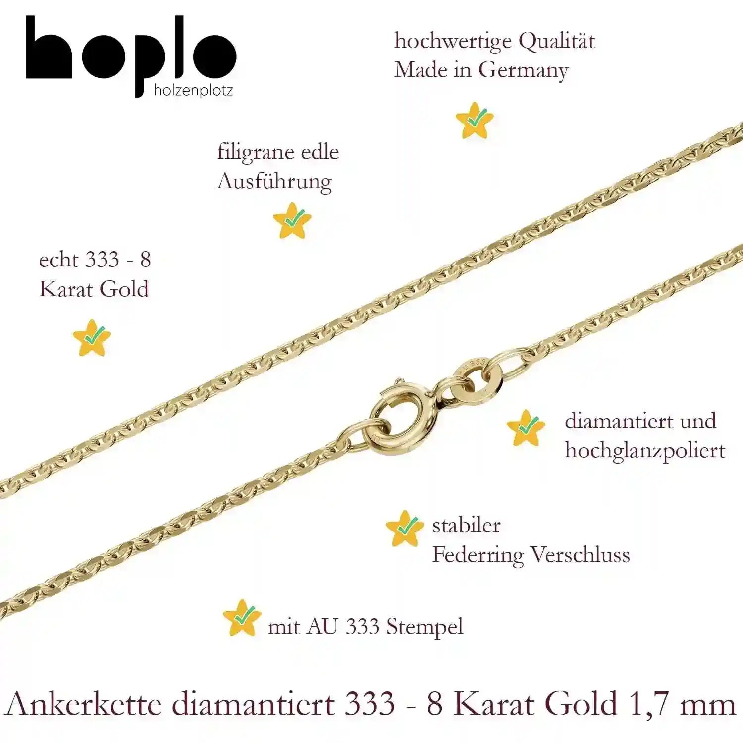 Edle massive Goldkette Ankerkette diamantiert 1,7 mm Halskette aus 333 - 8 Karat Gelbgold von höchster Qualität – Made in Germany - Länge nach Wahl