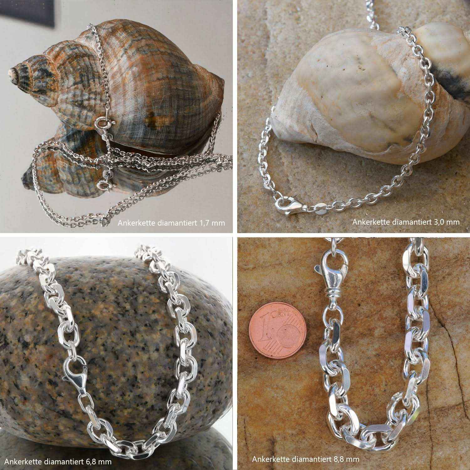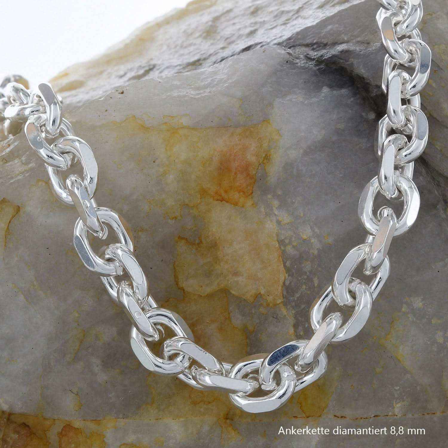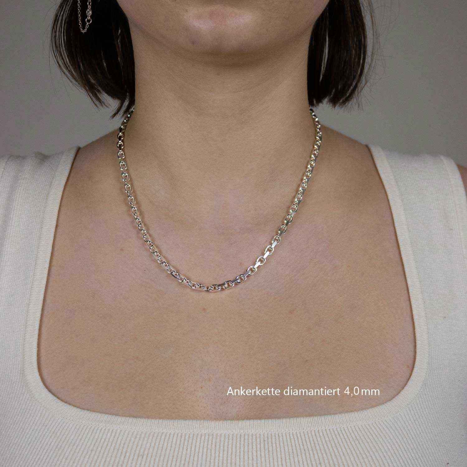 Edle massive Silberkette Ankerkette diamantiert Halskette aus 925 Sterlingsilber von höchster Qualität – Made in Germany.