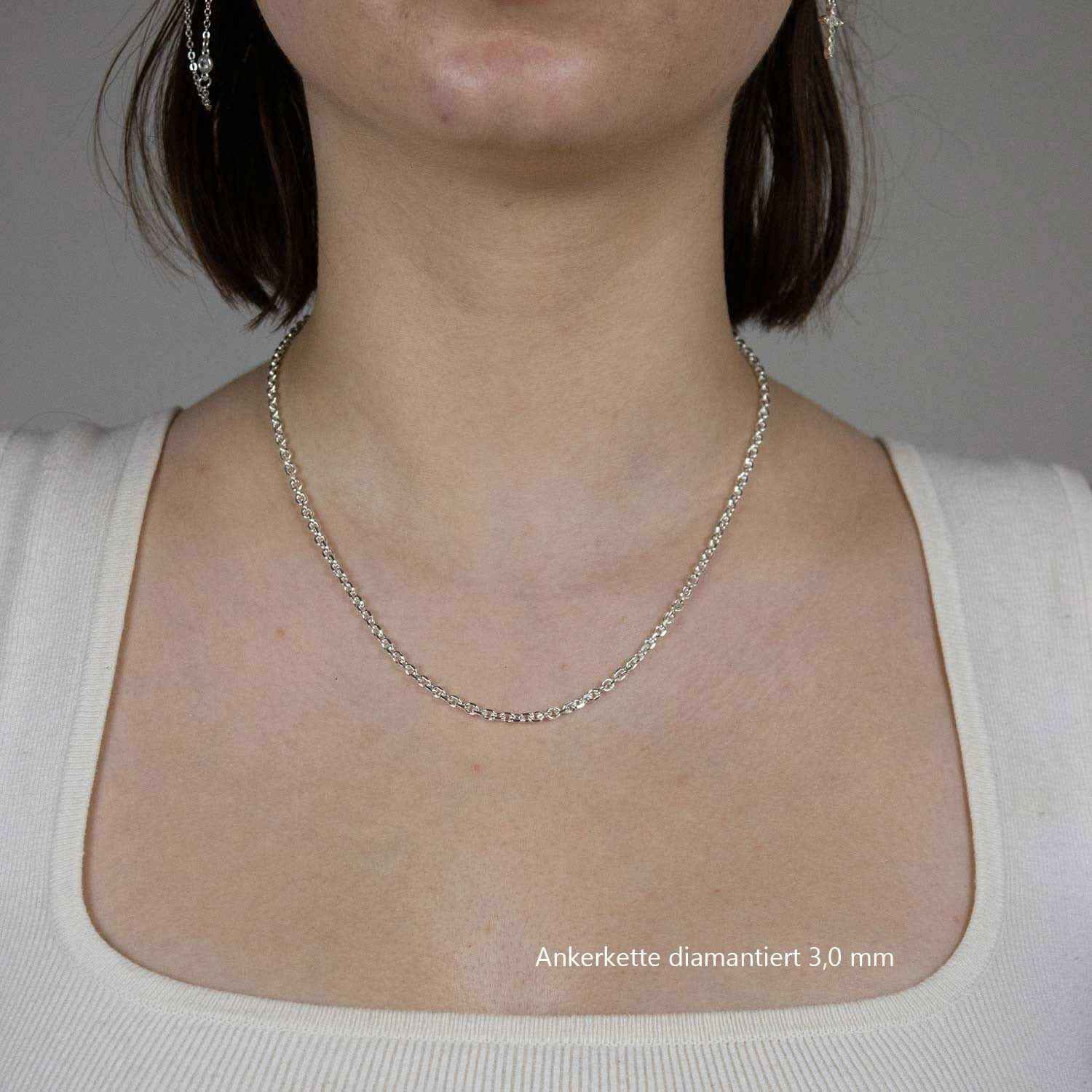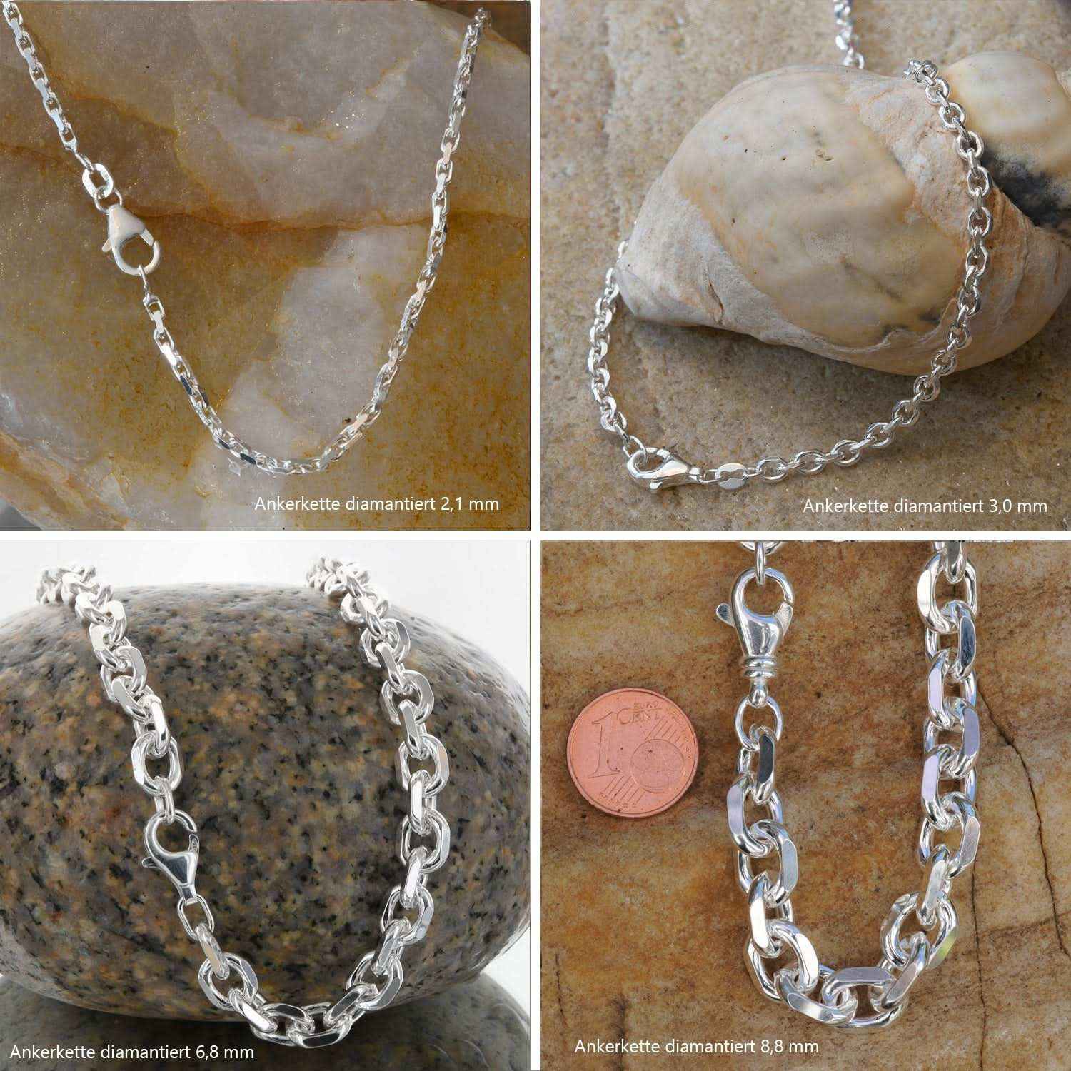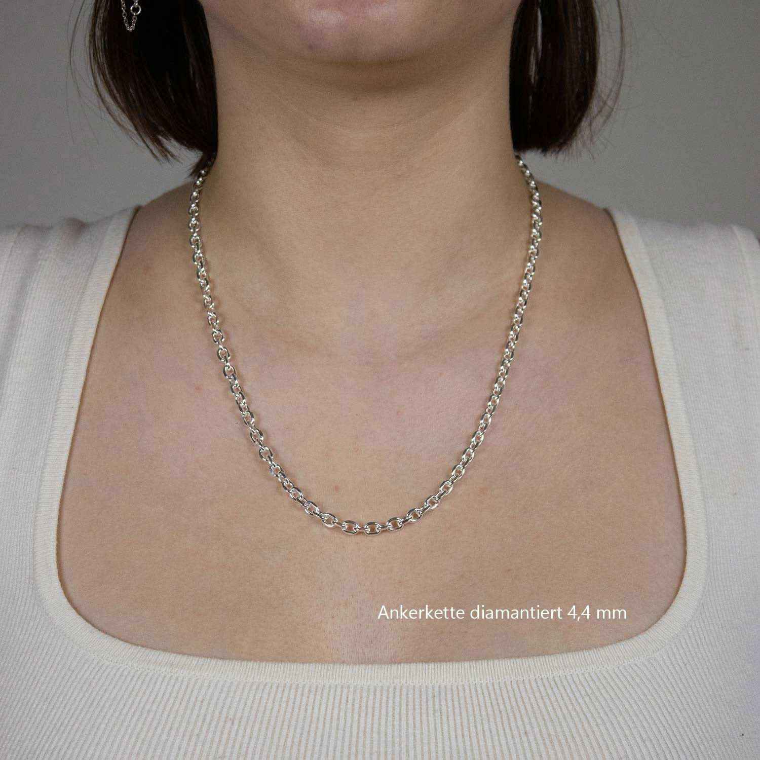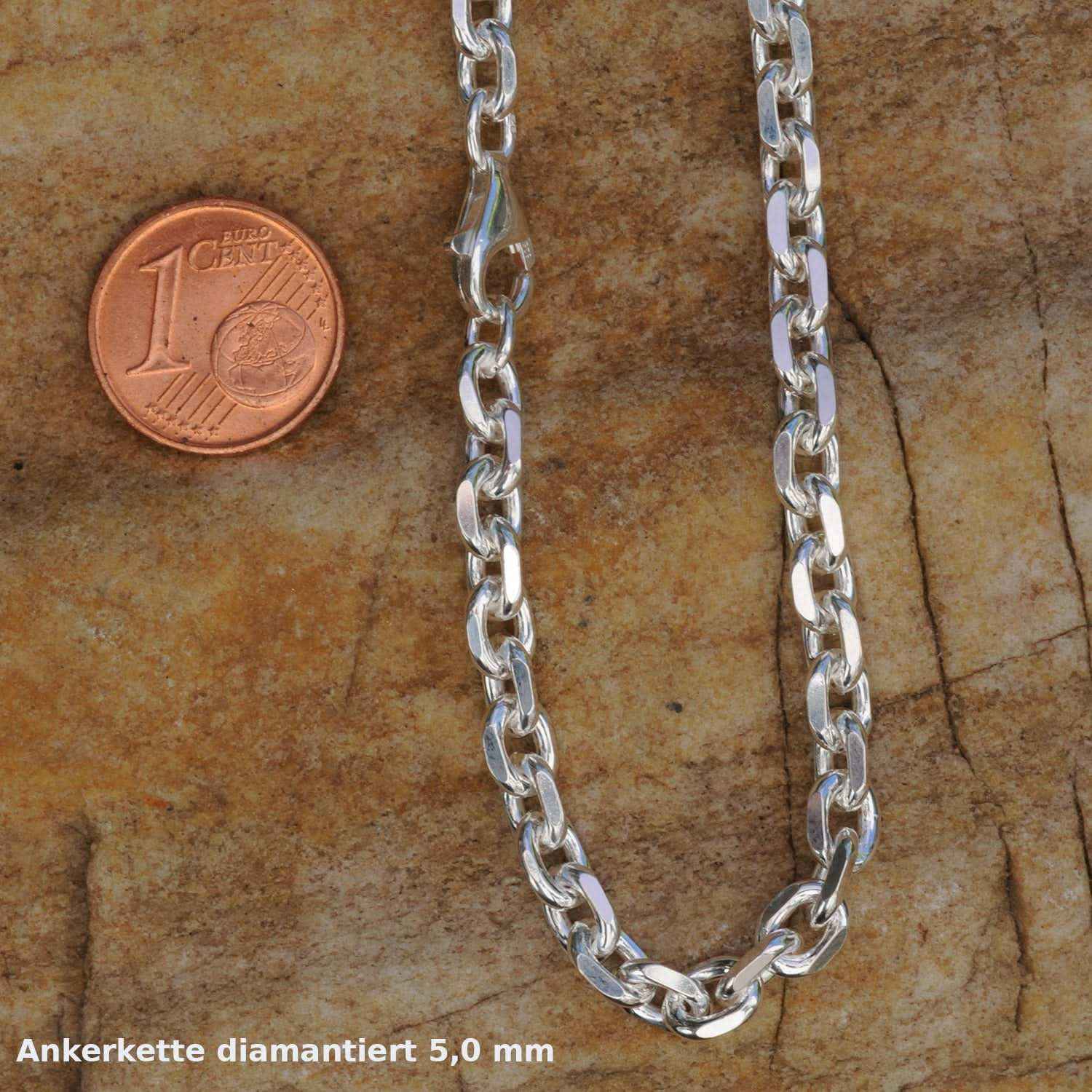 Edle massive Silberkette Ankerkette diamantiert Halskette aus 925 Sterlingsilber von höchster Qualität – Made in Germany.
