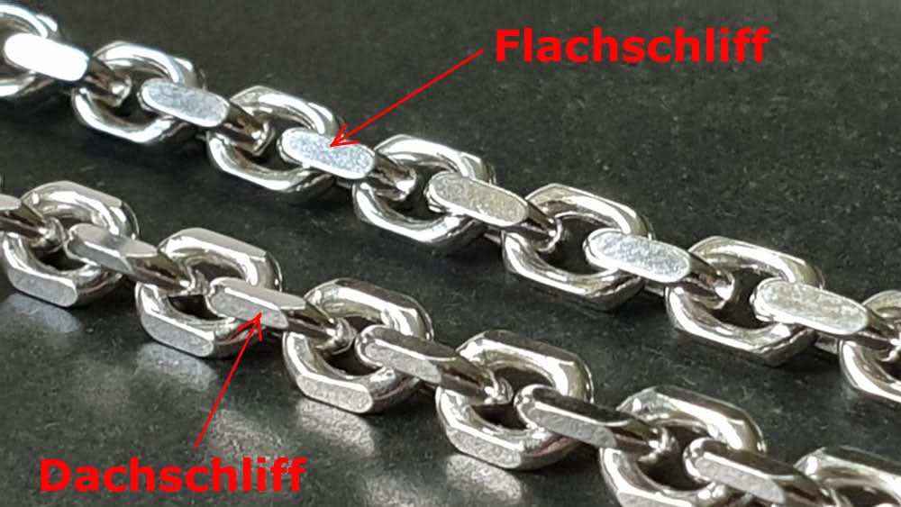 Wir bieten hier Ankerketten mit Dachschliff und Flachschliff an, siehe nachfolgende Bilder: