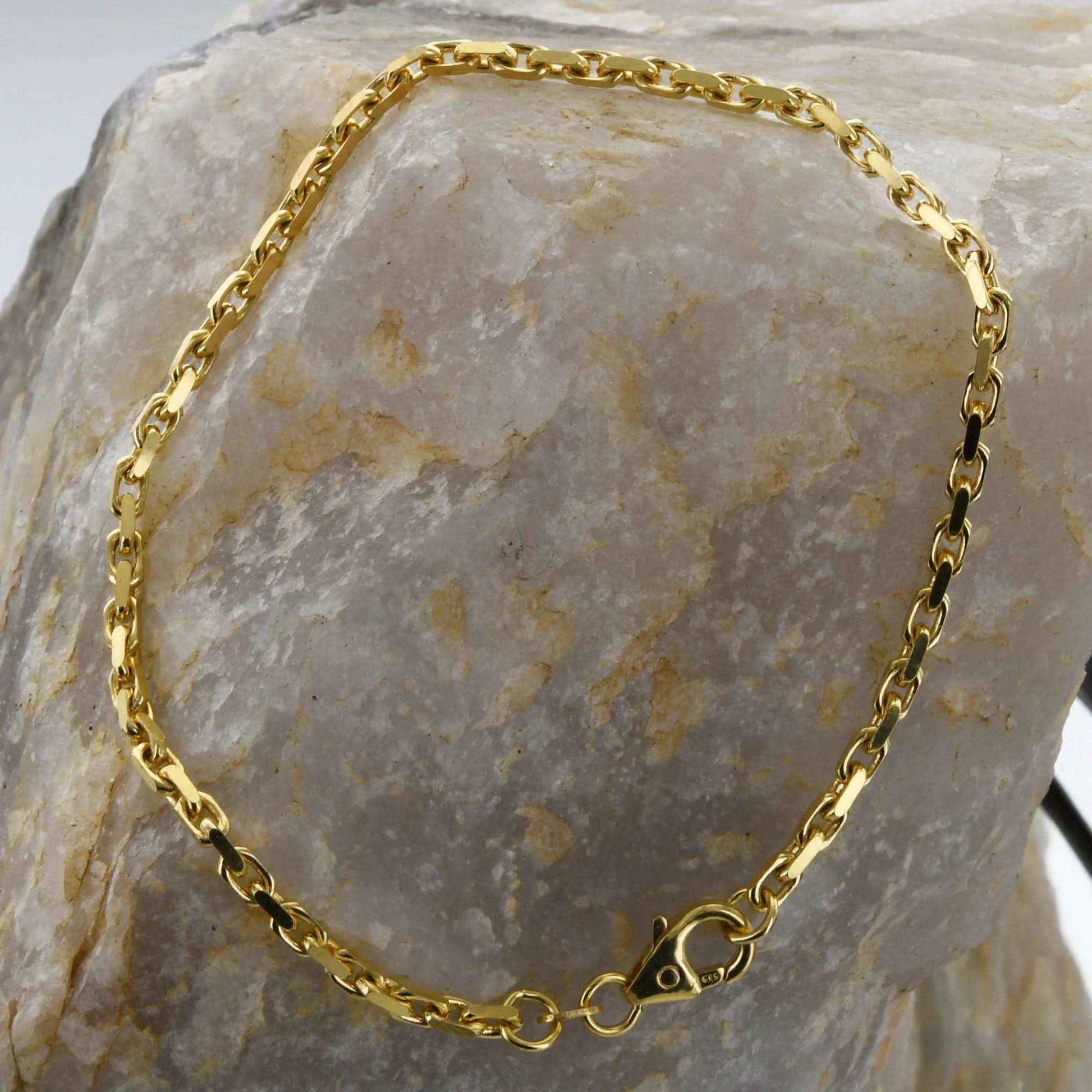 Edle massive Goldkette Ankerkette diamantiert 2,5 mm 21 cm Armkette aus 585 - 14 Karat Gelbgold von höchster Qualität Made in Germany.