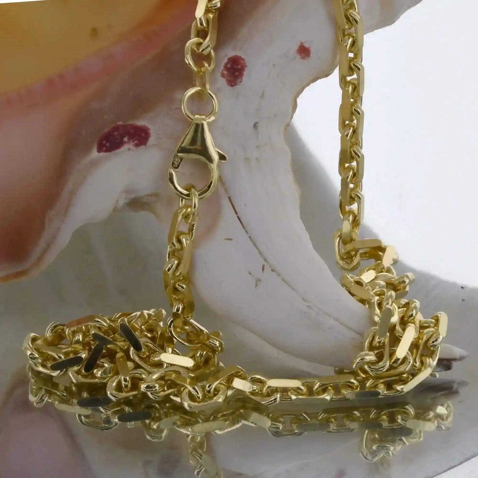 Bei unseren Ketten handelt es sich um eine solide, edle, massive und sehr hochwertige Ausführung in Juwelierqualität. Natürlich ist die Kette gestempelt. Die Ankerkette rund ist absolut präzise gearbeitet und sehr bequem zu tragen. Die Ankerkette ist durch eine Oberflächenbehandlung anlaufgeschützt und danach hochglanzpoliert für ein noch edleres Erscheinungsbild.