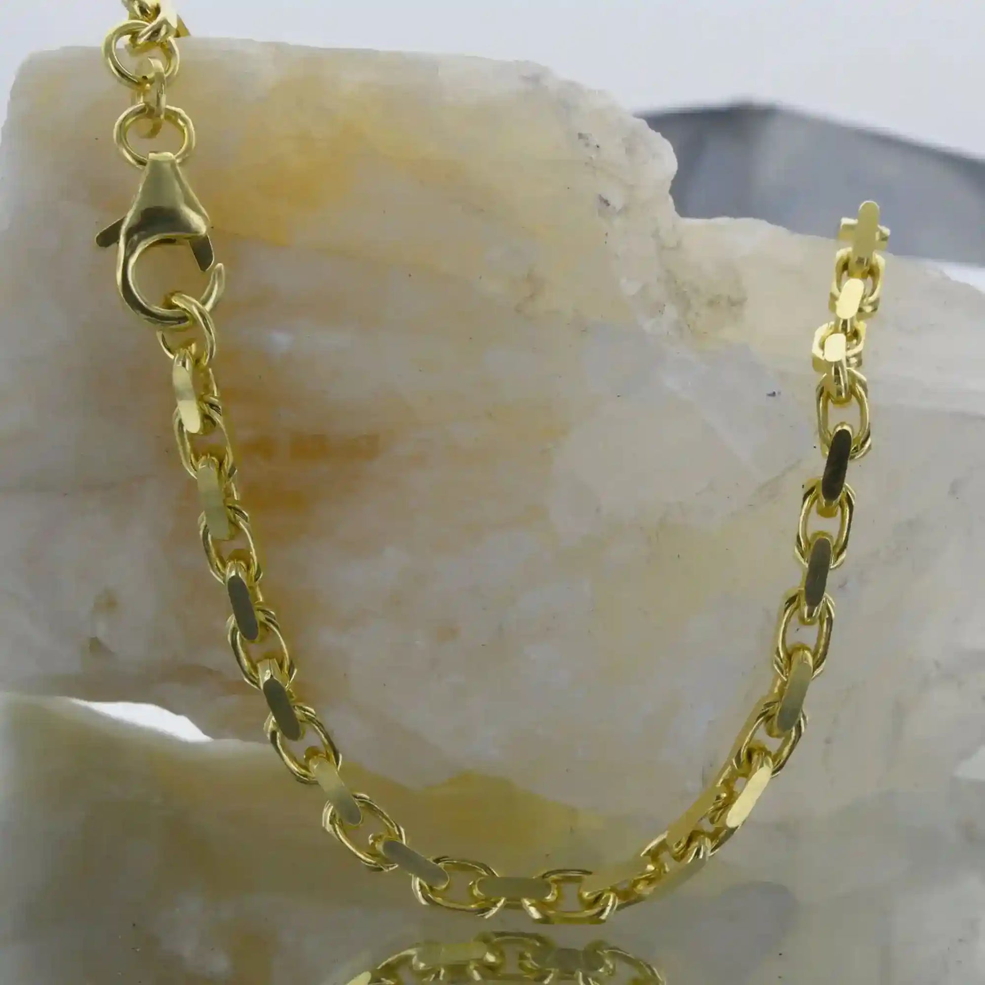 Die Ankerkette gehört zu den beliebtesten Ketten hierzulande. Bei der Ankerkette diamantiert wird die Kette nochmals bearbeitet. Dabei wird die Kette mittels rotierender Diamanten geschliffen und erhält dadurch einen noch edleren Glanz und glitzert noch mehr. Die Ankerkette wird sowohl von Männern als auch von Frauen getragen.