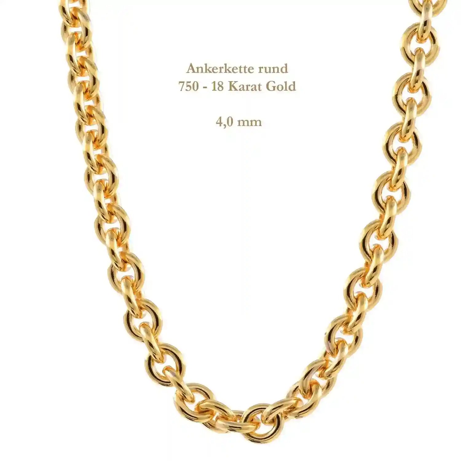 Edle massive Goldketten Ankerketten rund Halskette aus 750 - 18 Karat Gelbgold von höchster Qualität – Made in Germany