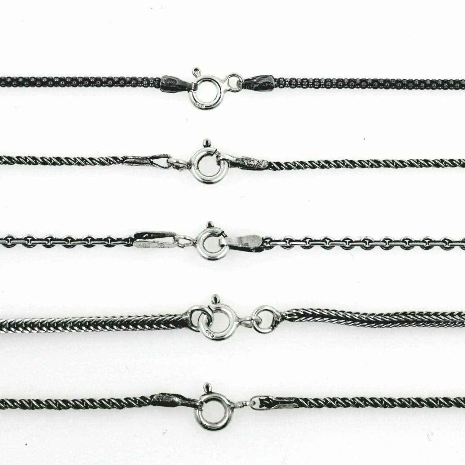 Eine Kette aus 925 Sterling Silber, oxidiert, Verschluss: Federring, Stärke: 1,60 mm