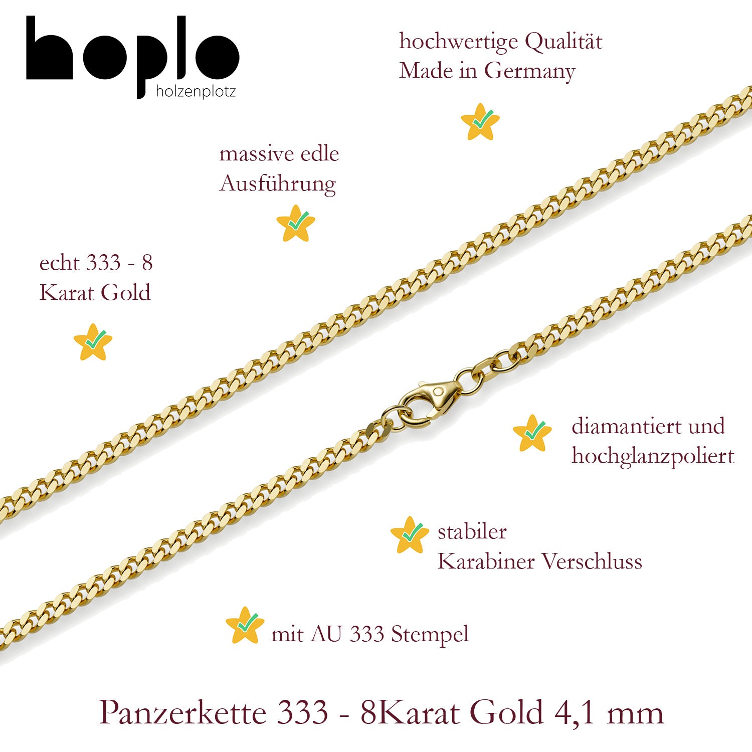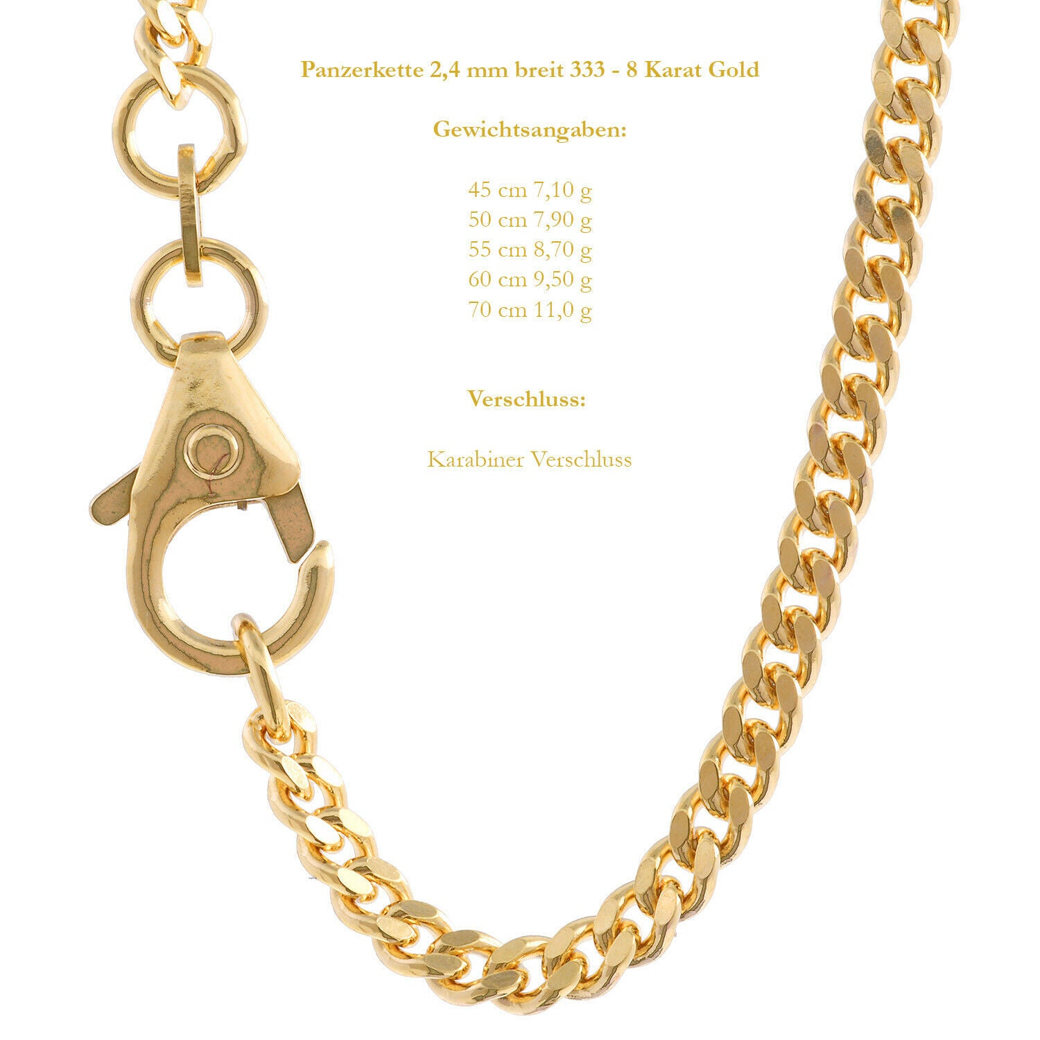 Edle massive Goldkette Panzerkette aus 333 - 8 Karat Gold - Gelbgold von höchster Qualität – Made in Germany.