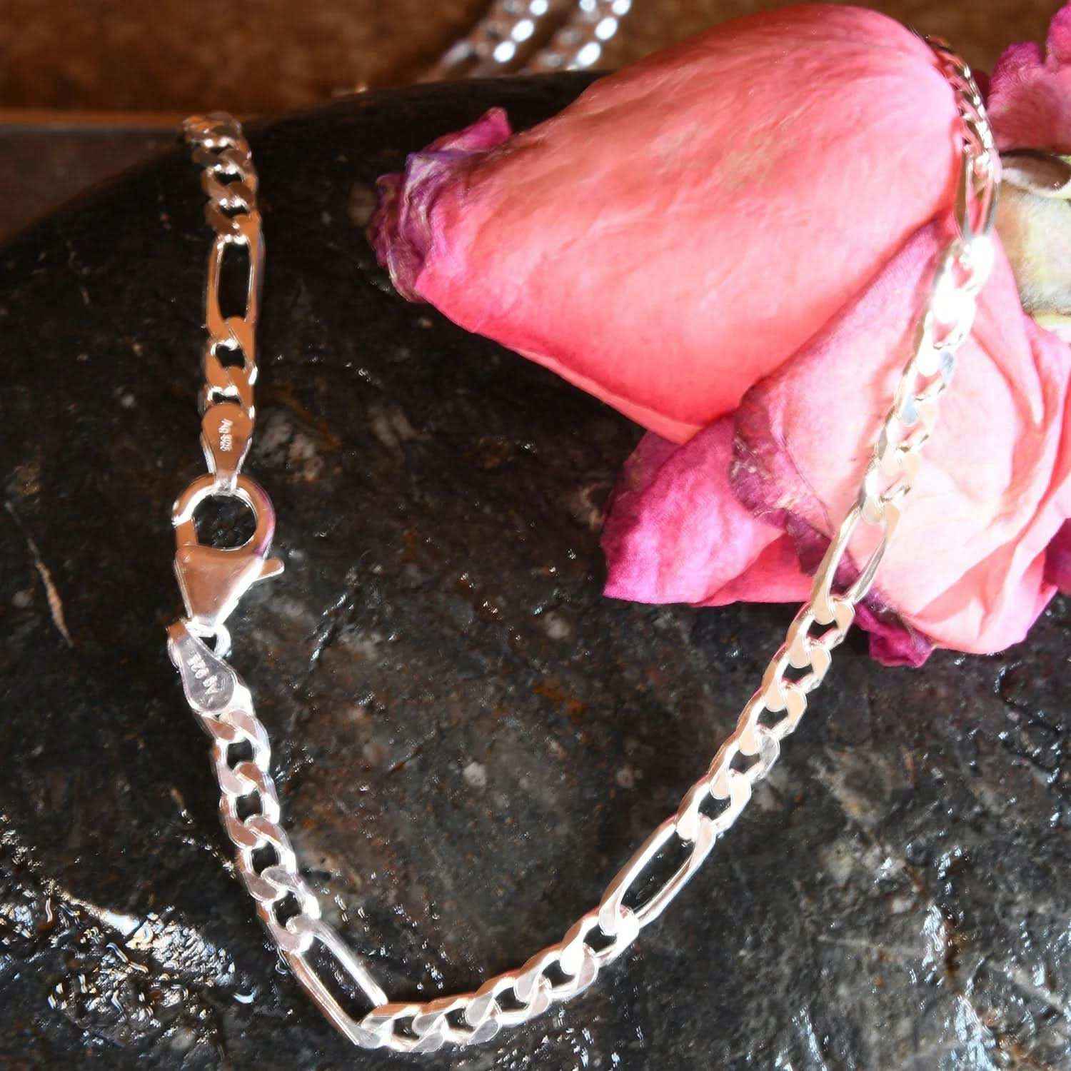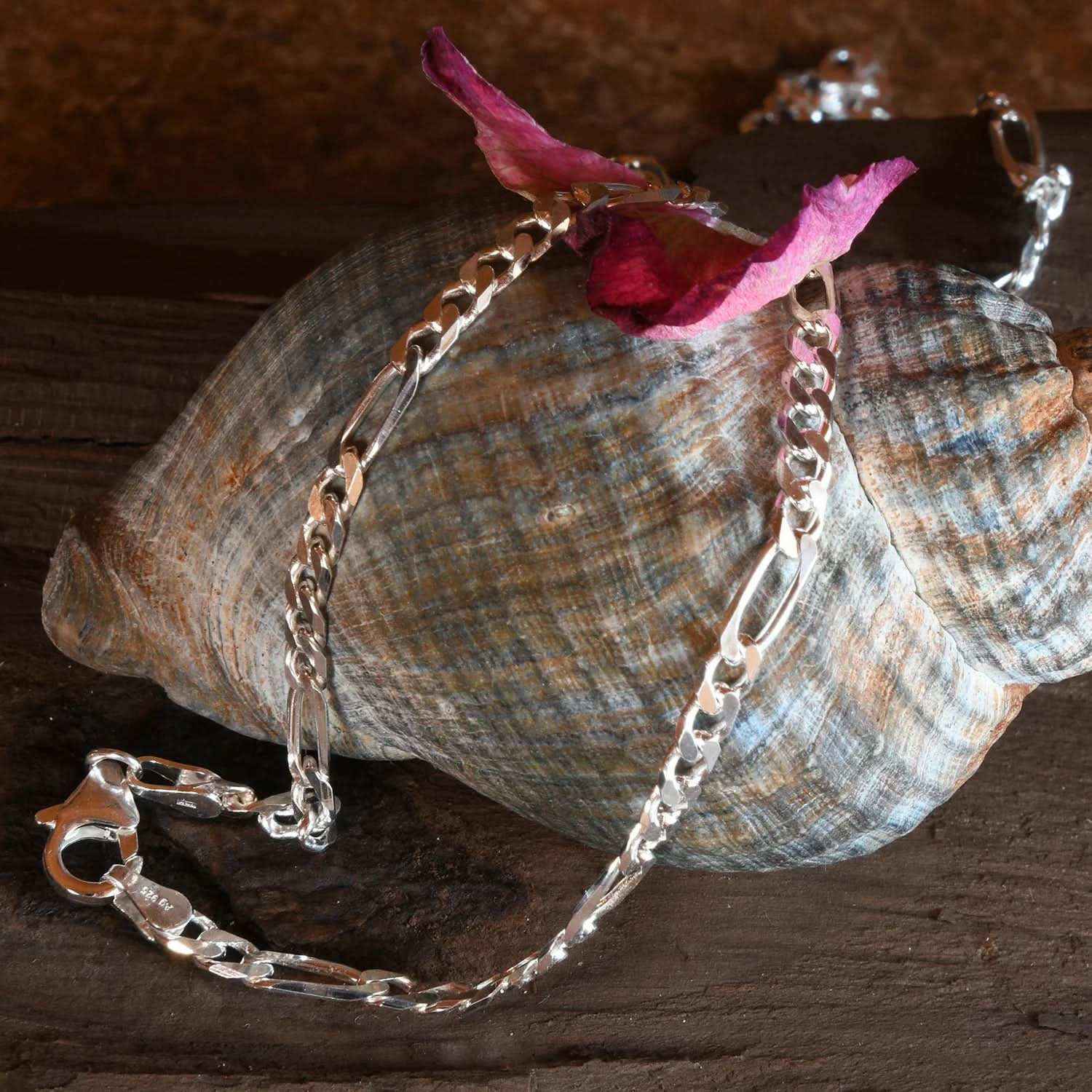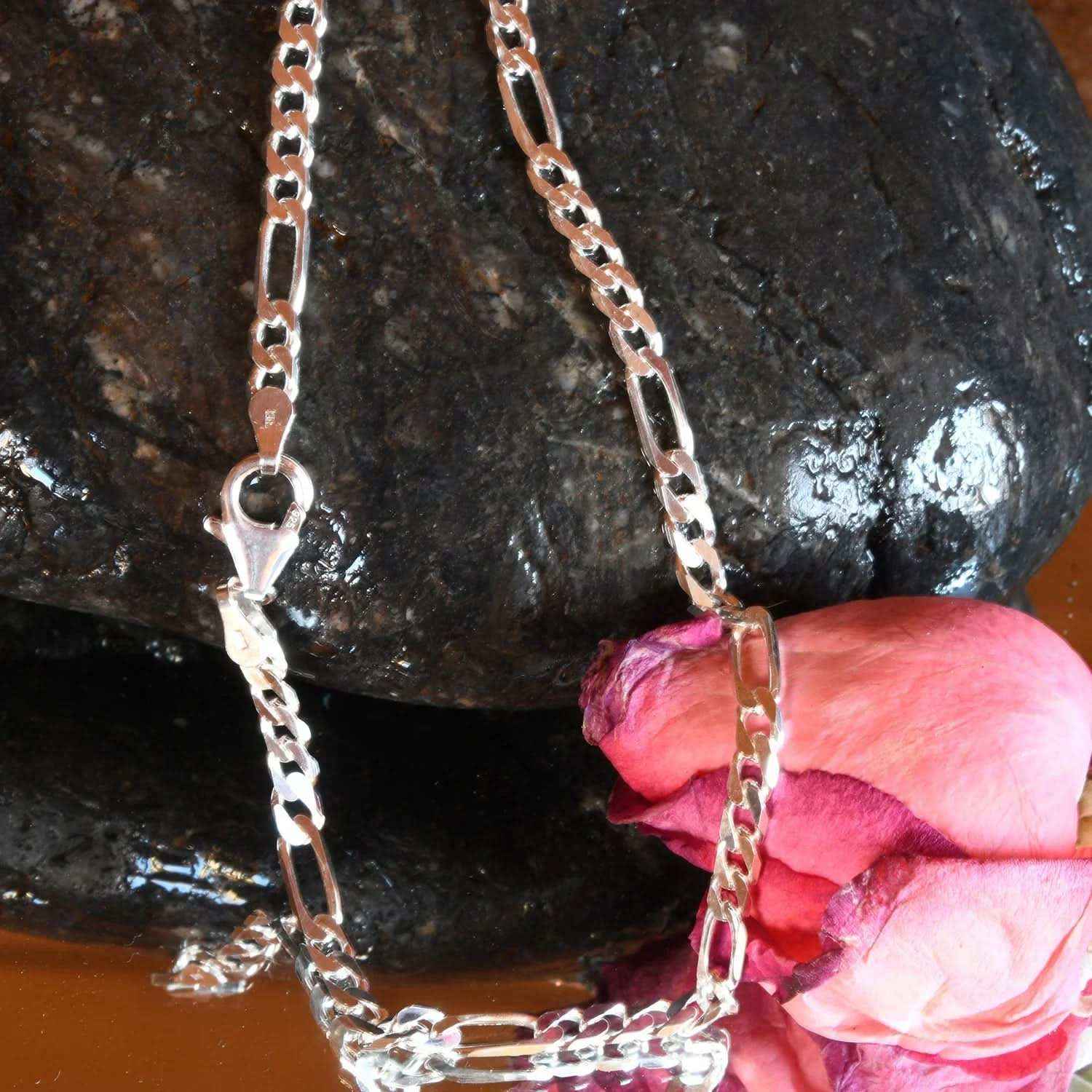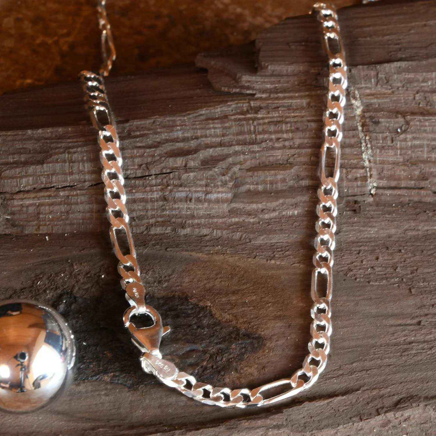 Edle massive Silberkette Figarokette Breite 3,4 mm Halskette aus 925 Sterlingsilber von höchster Qualität – Made in Germany.