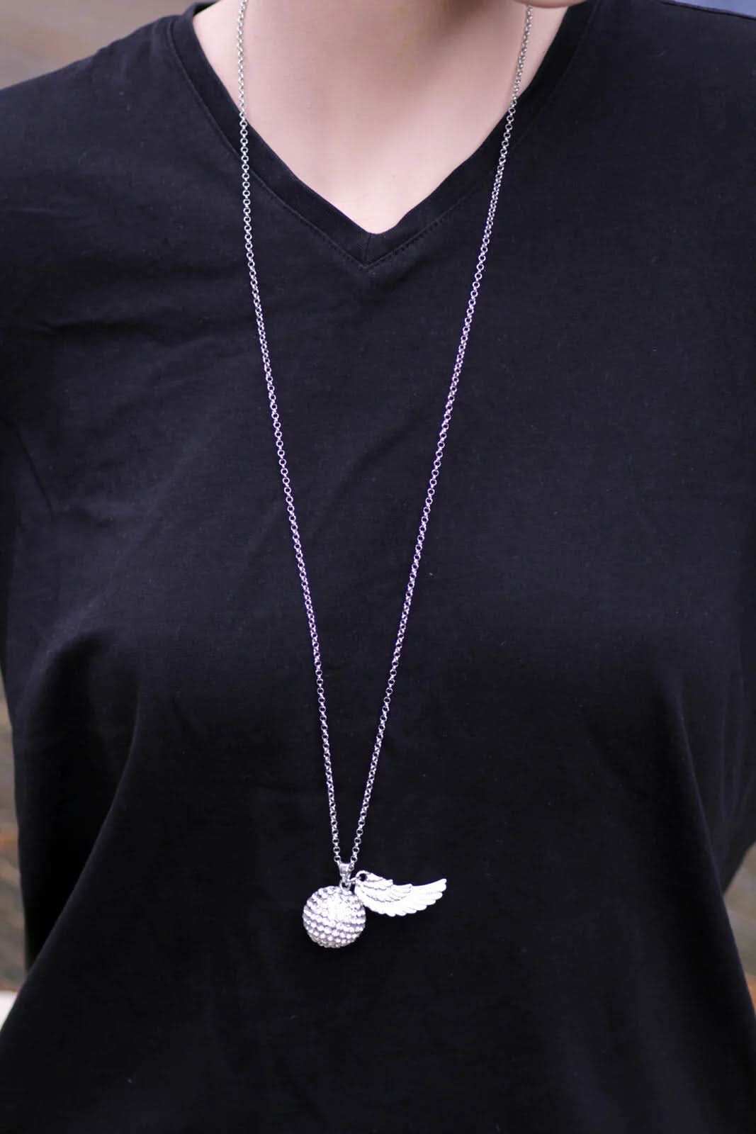 Die Klangkugel kommt mit einer 80 cm Erbskette, der Verschluss ist ein Karabinerhaken und bieten durch eine weitere kleine Kette eine Größenverstellbarkeit.