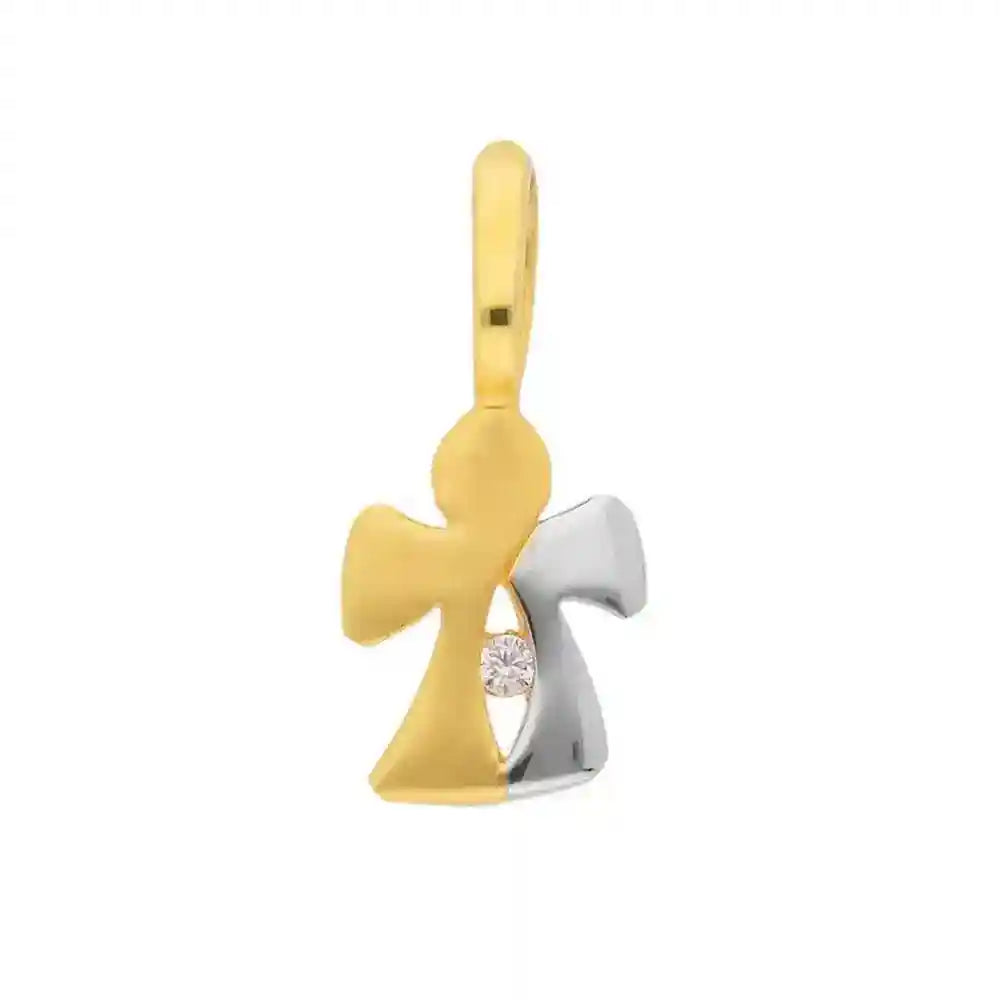 Hochwertiger Gold Anhänger Kettenanhänger Engel aus massiv 333 - 8 Karat Gelbgold rhodiniert mit Zirkonia Stein.