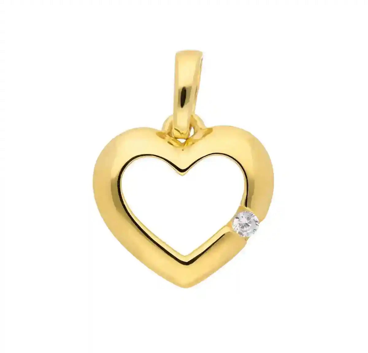 Hochwertiger Gold Anhänger Kettenanhänger Herz aus massiv 333 - 8 Karat Gelbgold mit Zirkonia Stein.