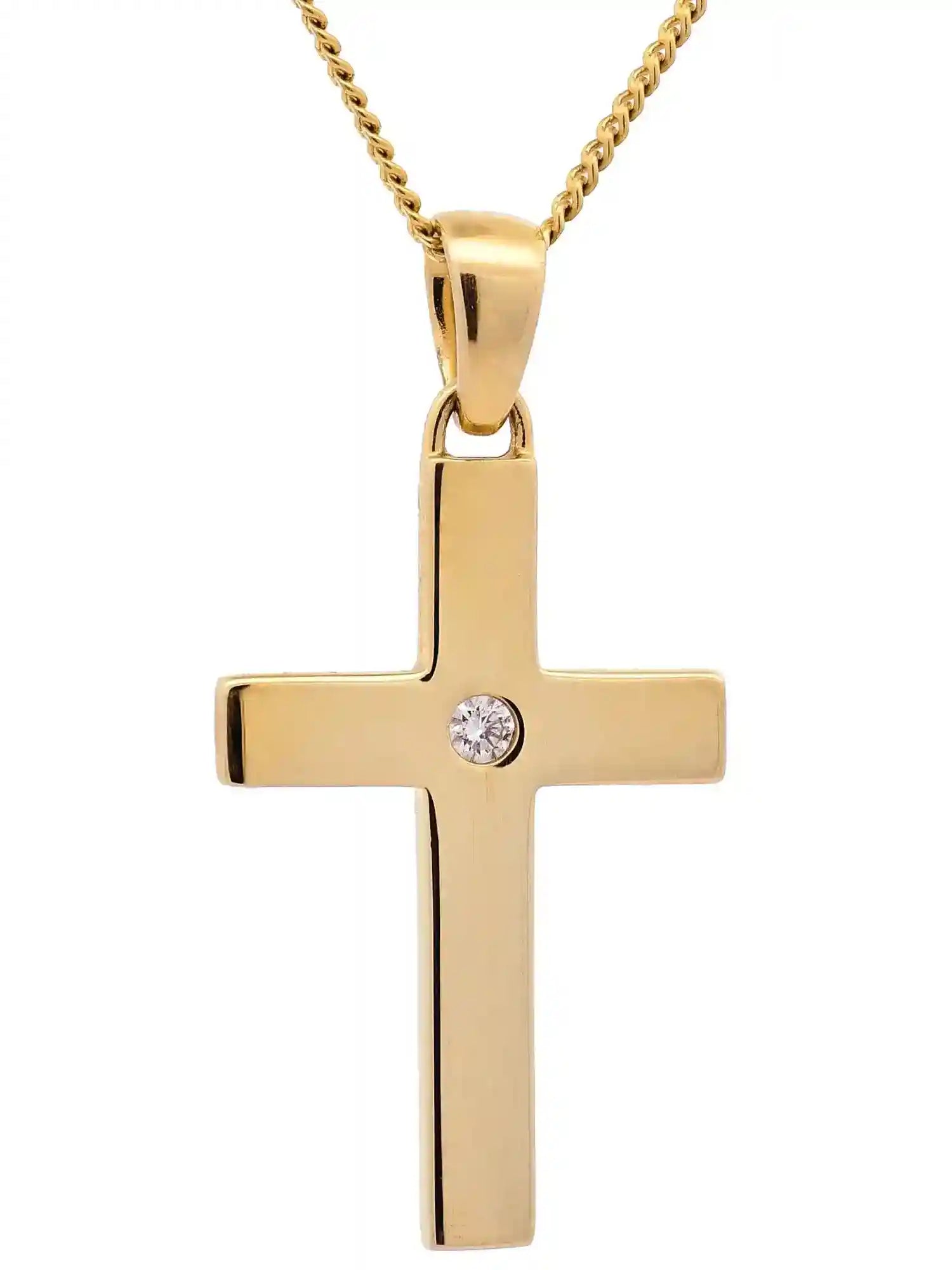 Hochwertiger Gold Anhänger Kettenanhänger Kreuz aus massiv 585 - 14 Karat Gelbgold mit Brillant.