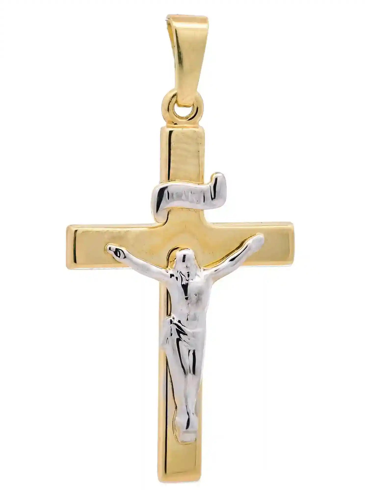 Hochwertiger Gold Anhänger Kettenanhänger Kreuz Korpus aus massiv 333 - 8 Karat Gelbgold rhodiniert.