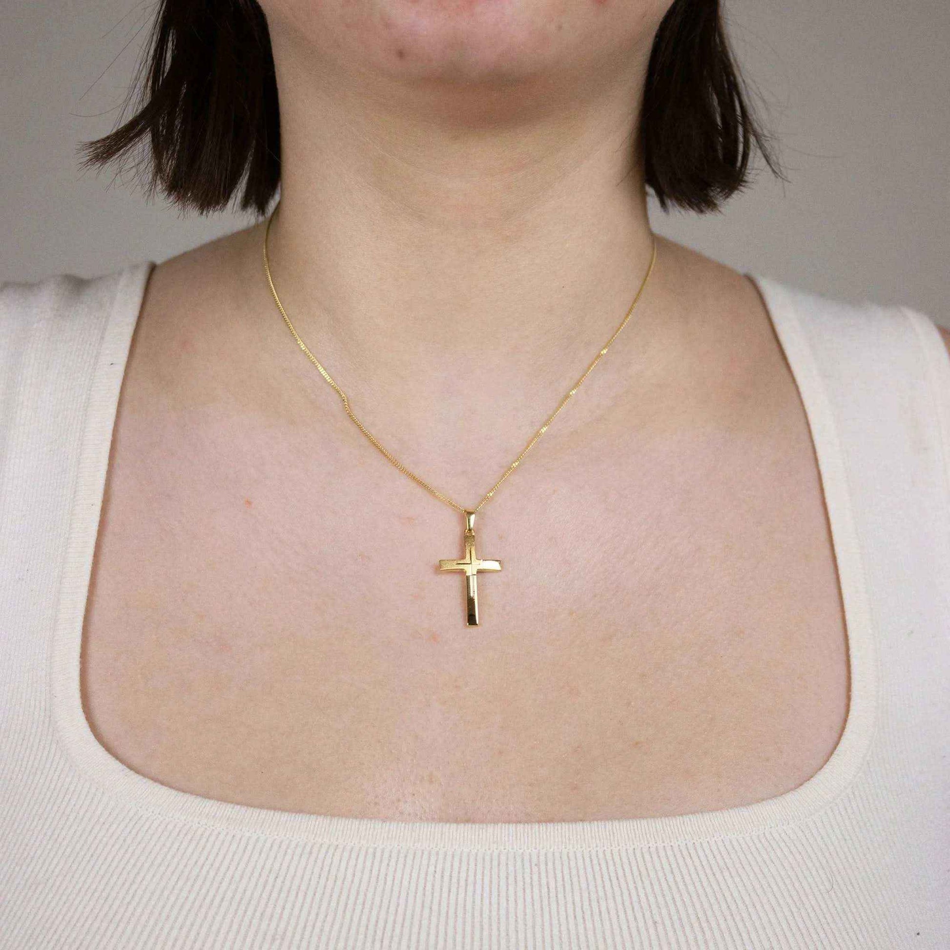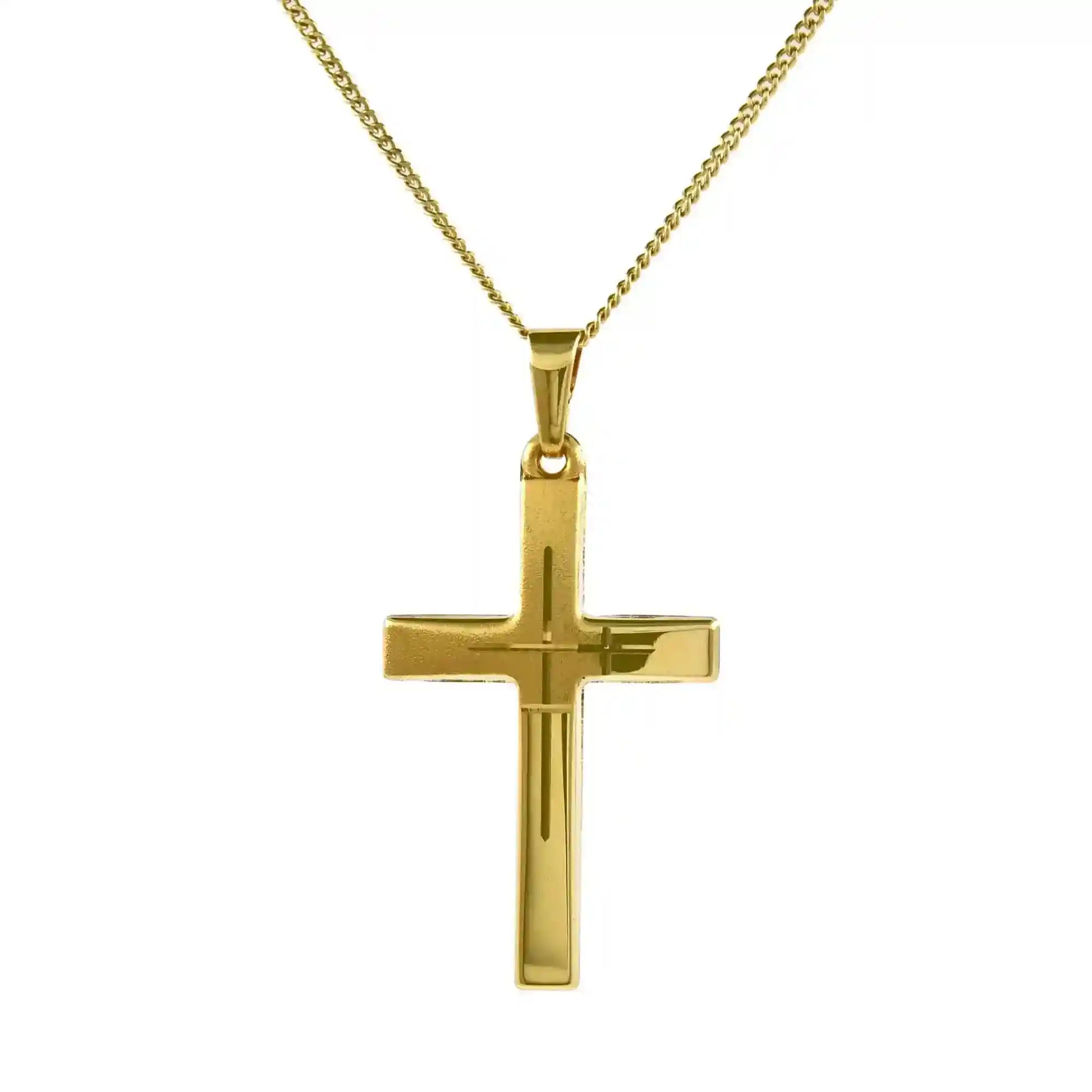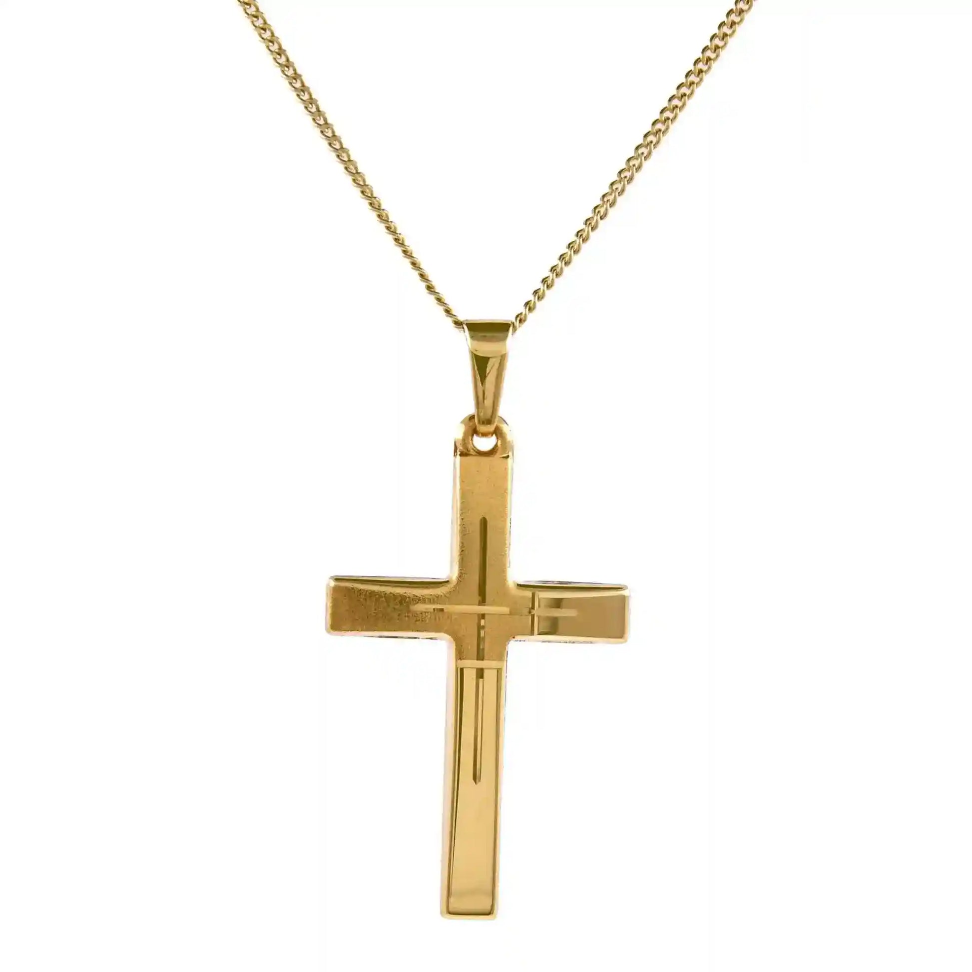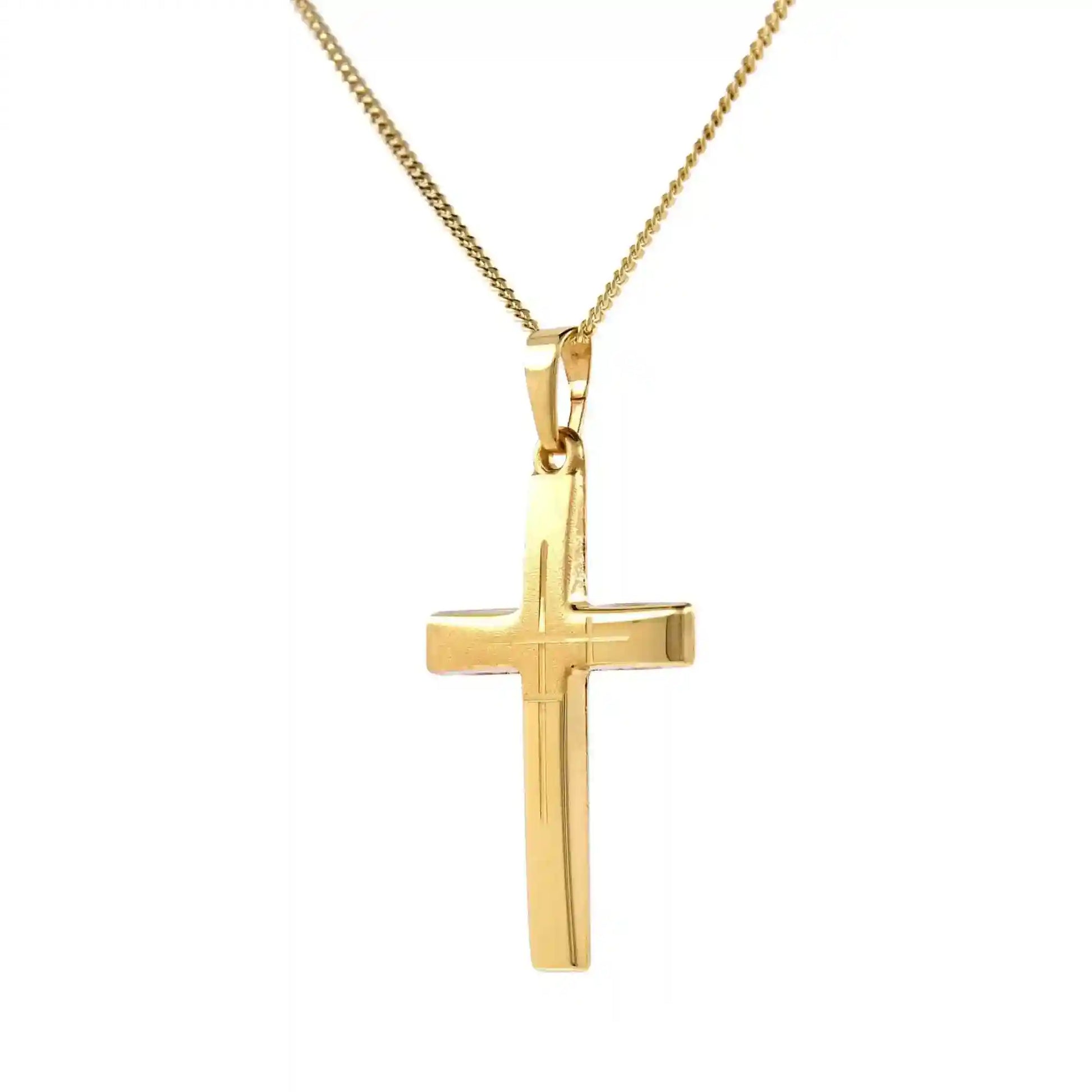 Hochwertiger Gold Anhänger Kettenanhänger Kreuz aus massiv 585 - 14 Karat Gelbgold.