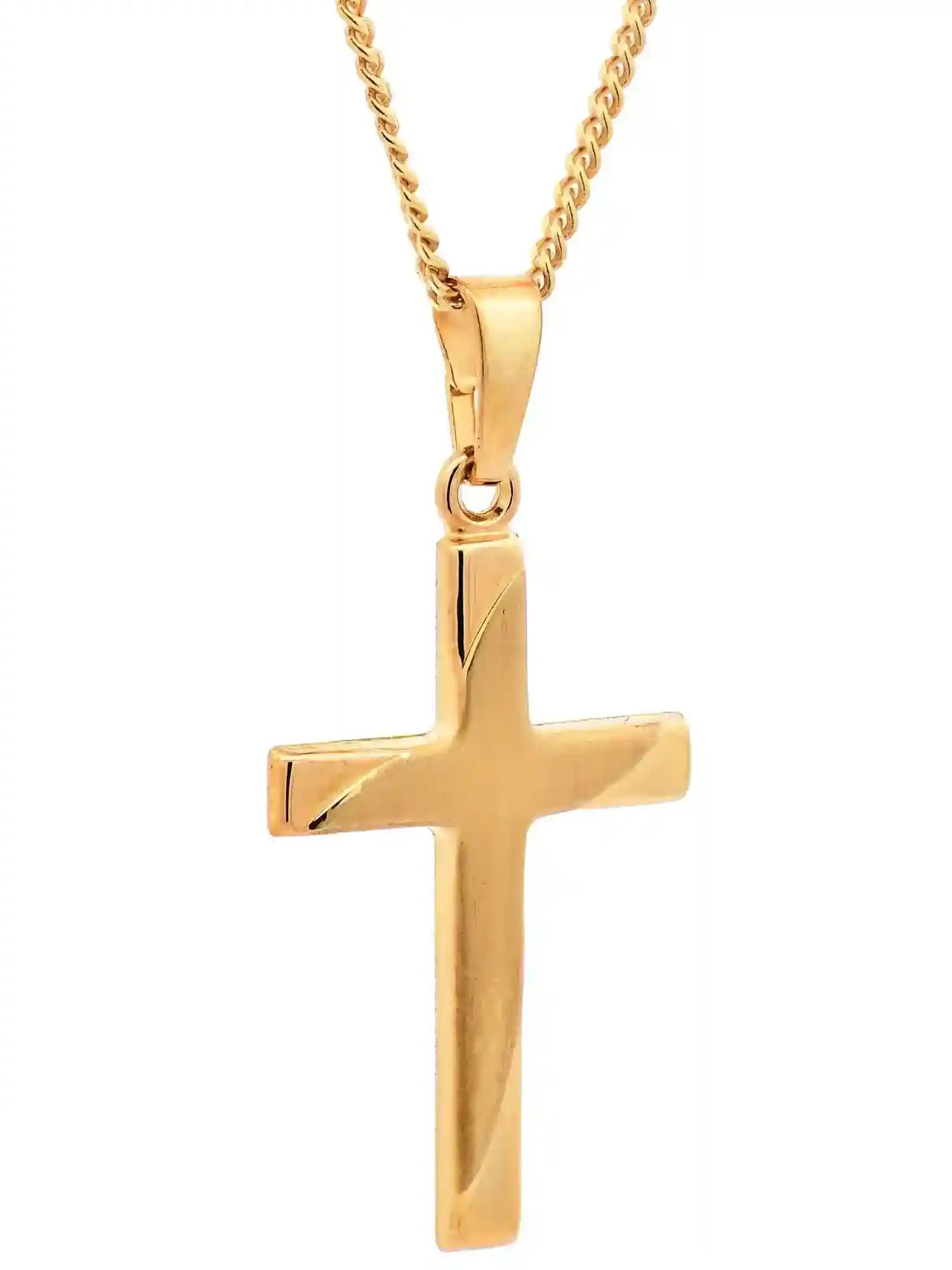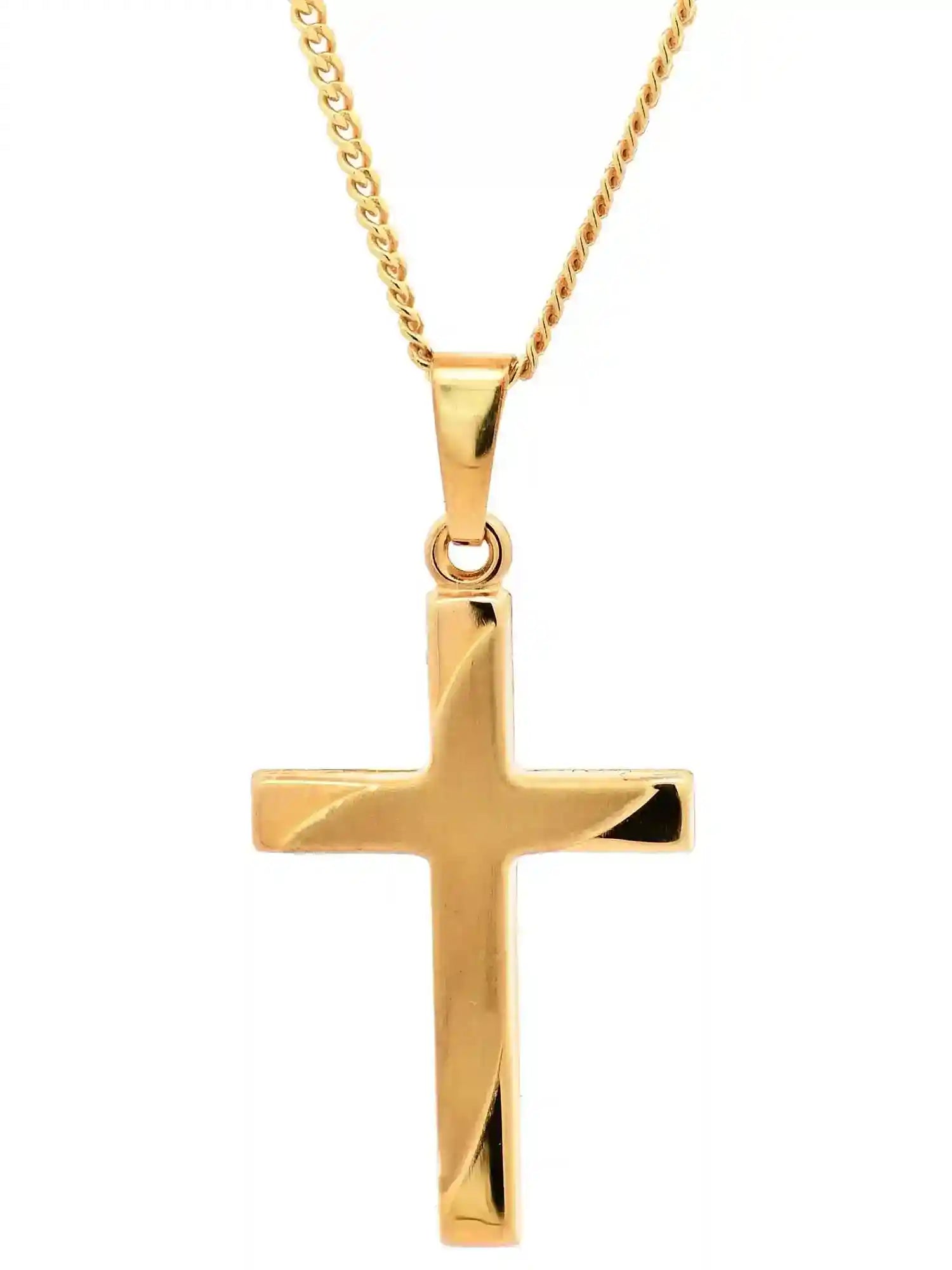 Hochwertiger Gold Anhänger Kettenanhänger Kreuz aus massiv 585 - 14 Karat Gelbgold.