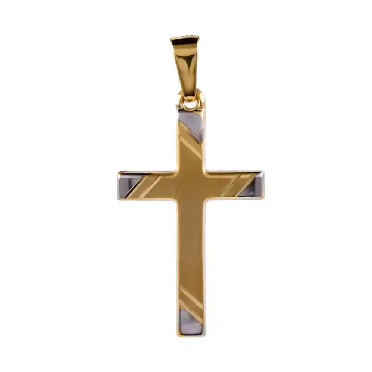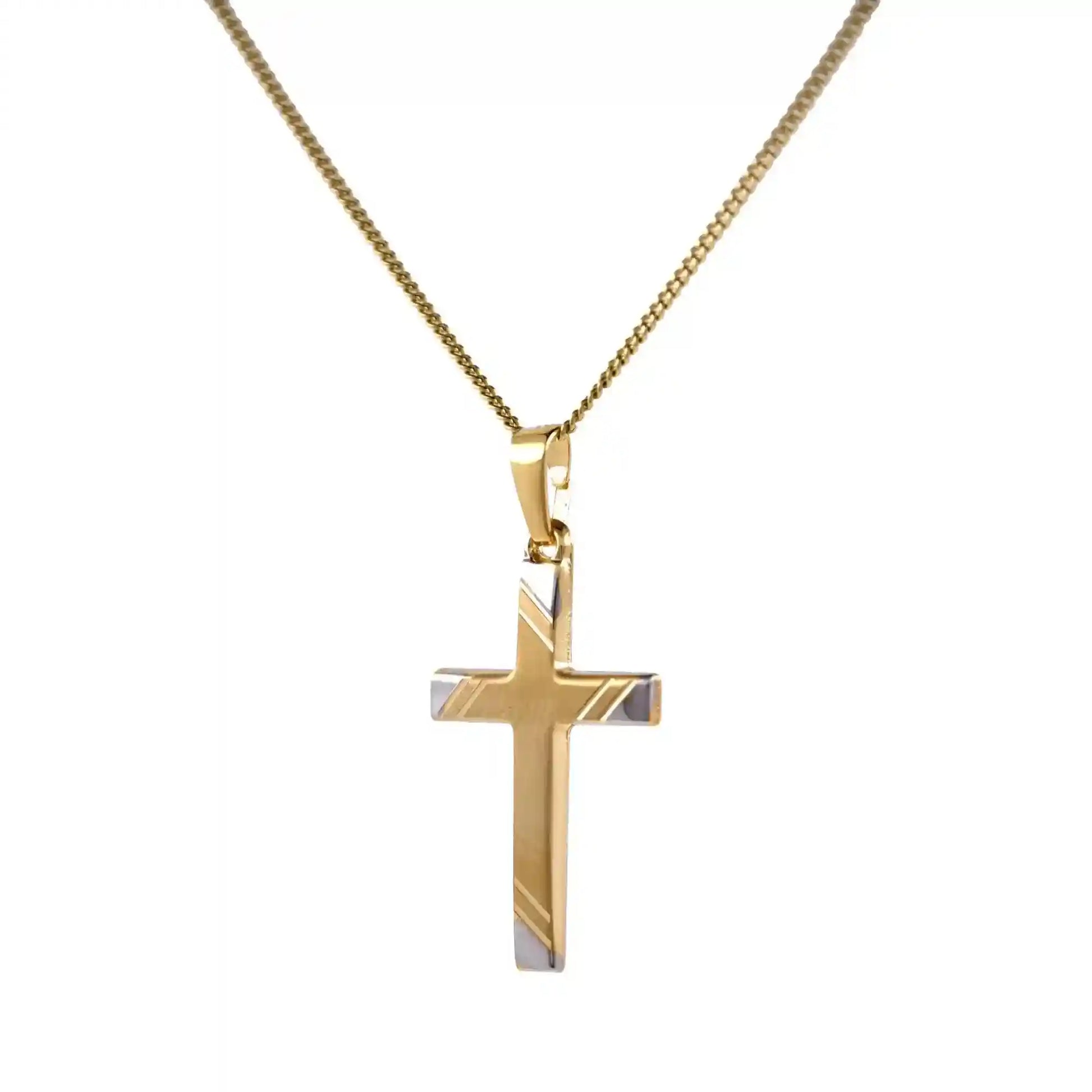 Hochwertiger Gold Anhänger Kettenanhänger Kreuz aus massiv 585 - 14 Karat Gelbgold, rhodiniert.