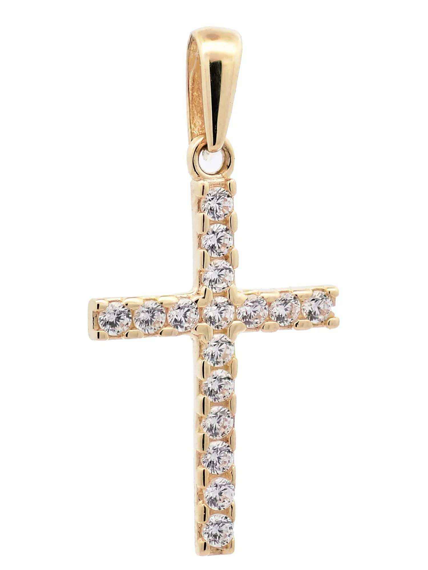 Hochwertiger Gold Anhänger Kettenanhänger Kreuz aus massiv 333 - 8 Karat Gelbgold mit Zirkonia Stein.