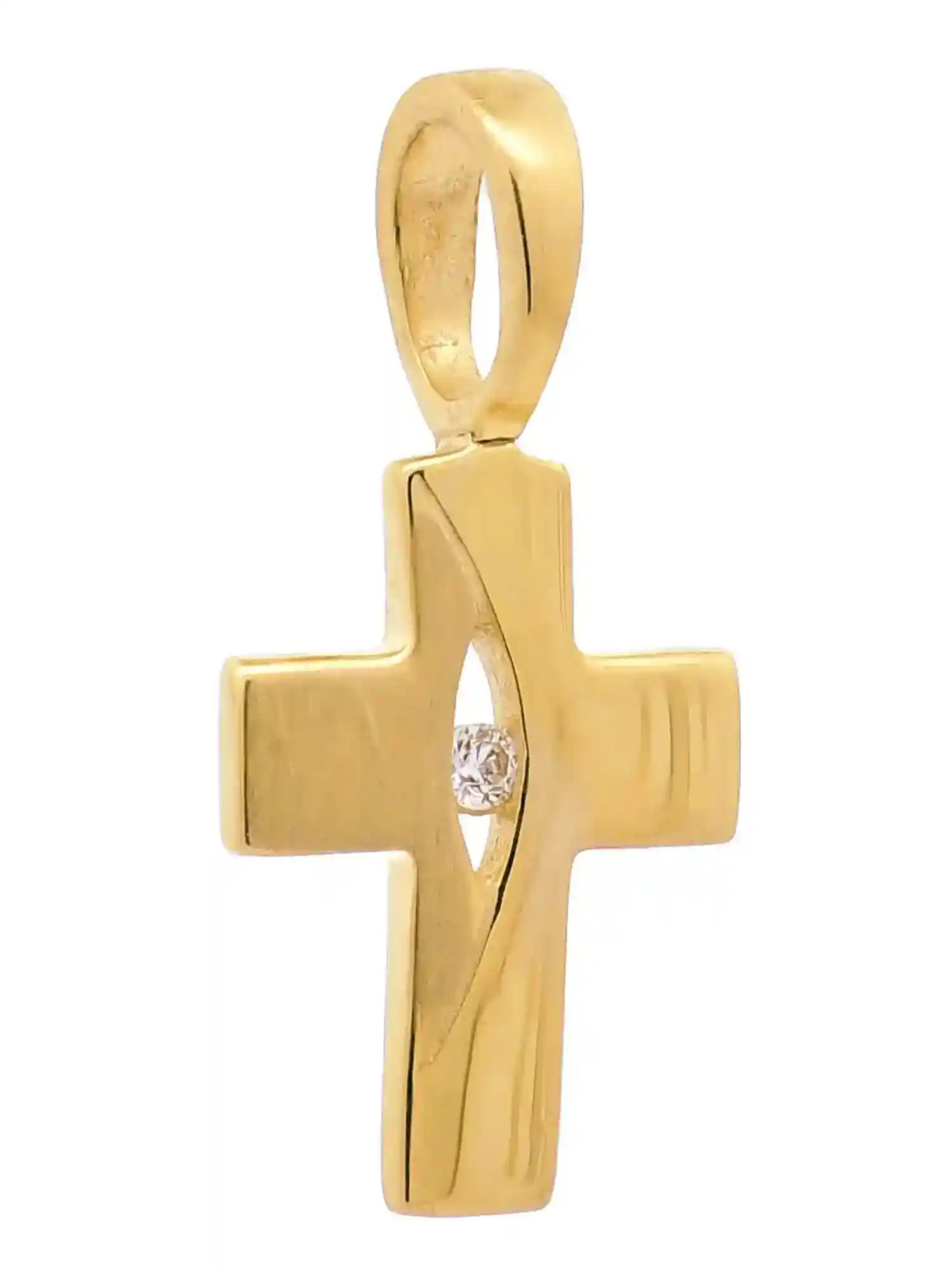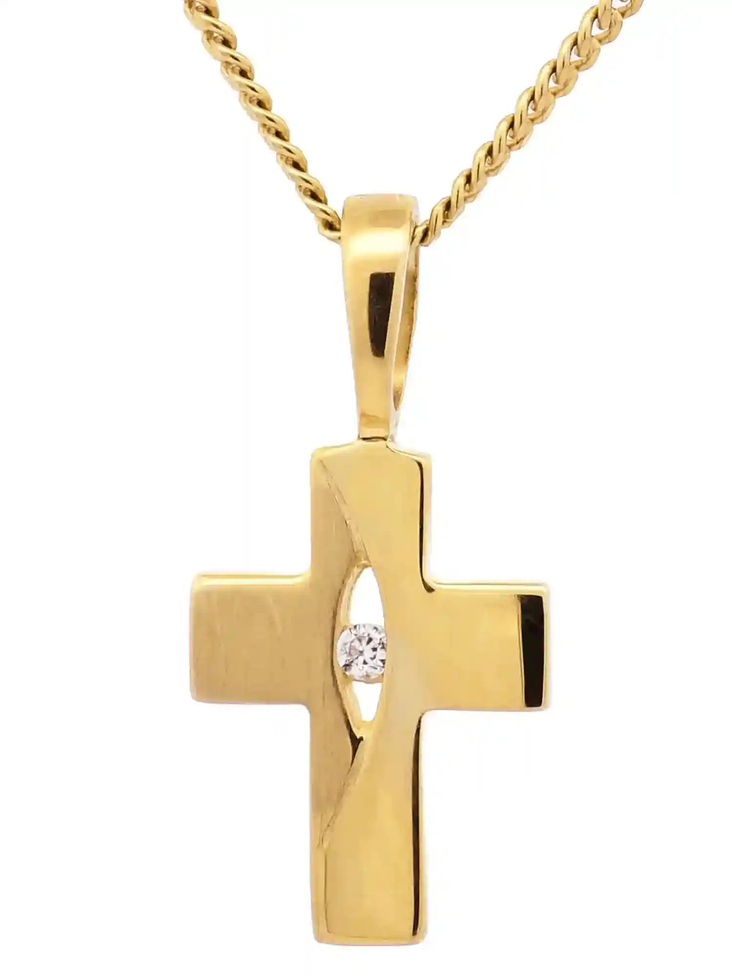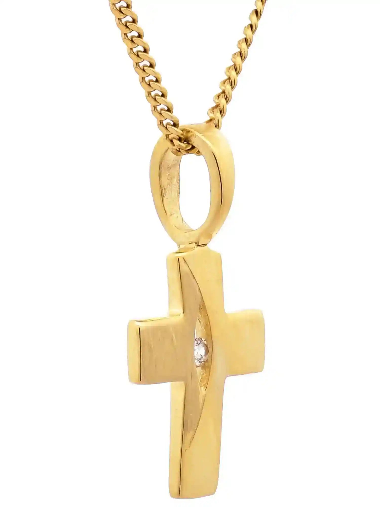 Hochwertiger Gold Anhänger Kettenanhänger Kreuz aus massiv 333 - 8 Karat Gelbgold mit Zirkonia Stein.