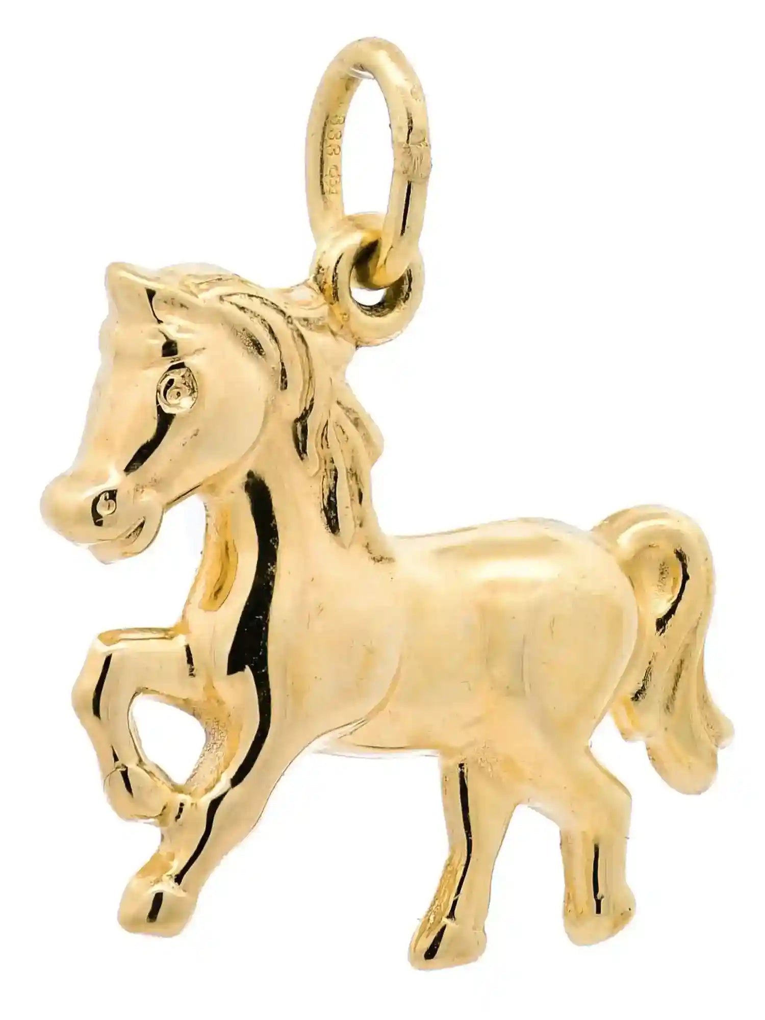 Hochwertiger Gold Anhänger Kettenanhänger Pferd aus massiv 333 - 8 Karat Gelbgold.