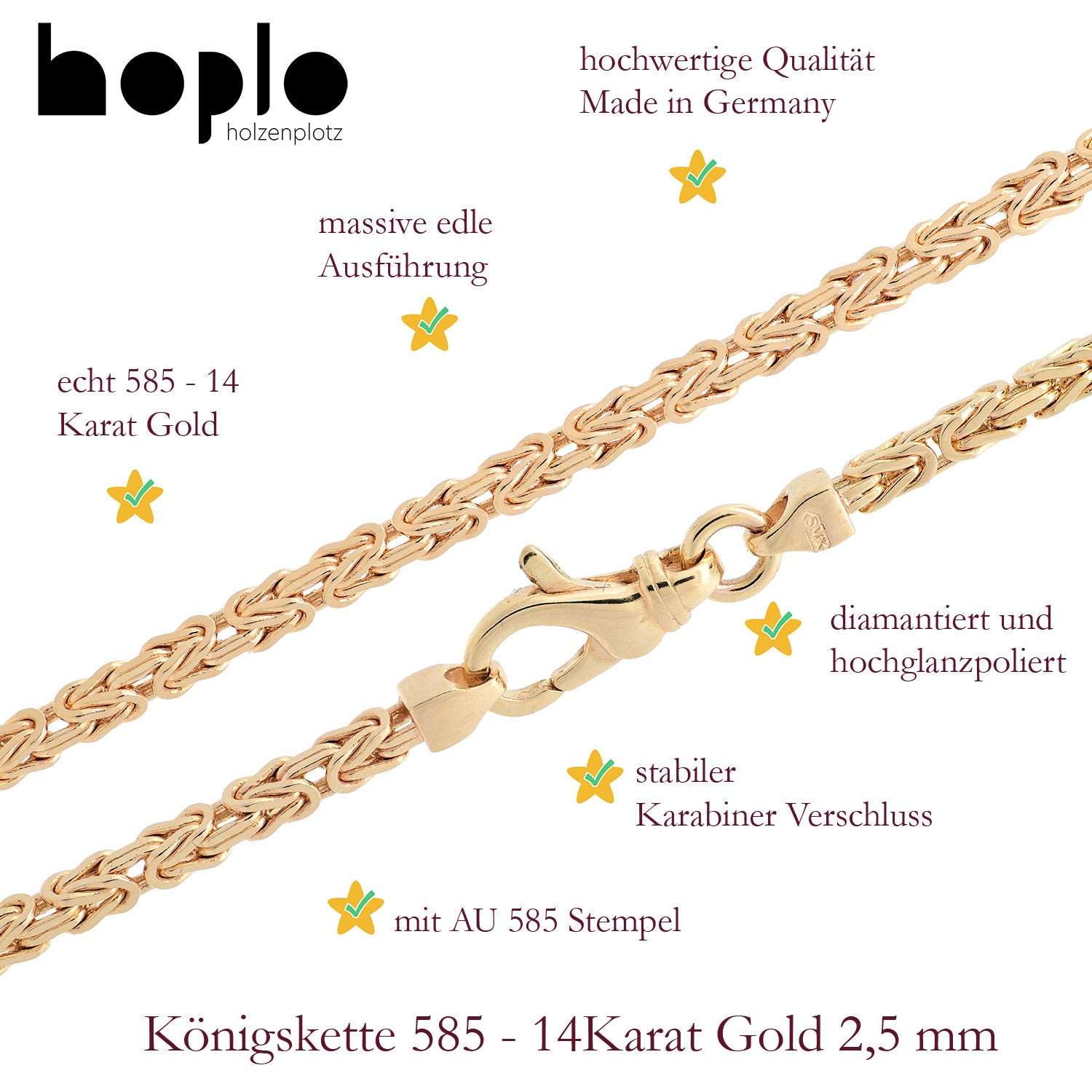 Unsere Ketten werden in Deutschland hergestellt. Bei diesen Ketten handelt es sich um eine solide, edle, massive und sehr hochwertige Ausführung mit einem Gold Feingehalt von 585 - 14 Karat Gold. Natürlich sind alle Ketten gestempelt. Diese Goldketten sind absolut präzise gearbeitet und sehr bequem zu tragen. Diese Ketten sind hochglanzpoliert für ein noch edleres Erscheinungsbild. Das Byzantinische Flechtmuster wird in Deutschland auch als Königskette bezeichnet. Die Königsketten auch Byzantinerketten genannt, werden von Männern und Frauen getragen. Die aufwändige und auffällige Flechtart dieser Kette ist Tausende von Jahren alt. Die meisten Männer bevorzugen Ketten aus klassischen Materialien wie Silber oder Gold. Die Breite der Kette und das Muster machen die Königskette beliebt bei Männern jeden Alters. Die dünneren Modelle wirken jedoch auch bei Frauen sehr stilvoll.