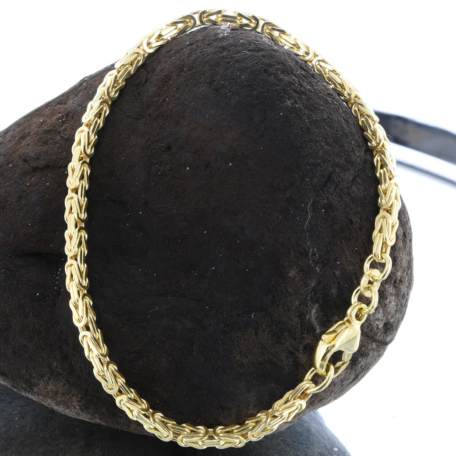 Unsere Ketten werden in Deutschland hergestellt. Bei diesen Ketten handelt es sich um eine solide, edle, massive und sehr hochwertige Ausführung mit einem Gold Feingehalt von 333 - 8 Karat Gold. Natürlich sind alle Ketten gestempelt. Diese Goldketten sind absolut präzise gearbeitet und sehr bequem zu tragen. Diese Ketten sind hochglanzpoliert für ein noch edleres Erscheinungsbild. Das Byzantinische Flechtmuster wird in Deutschland auch als Königskette bezeichnet. Die Königsketten auch Byzantinerketten genannt, werden von Männern und Frauen getragen. Die aufwändige und auffällige Flechtart dieser Kette ist Tausende von Jahren alt. Die meisten Männer bevorzugen Ketten aus klassischen Materialien wie Silber oder Gold. Die Breite der Kette und das Muster machen die Königskette beliebt bei Männern jeden Alters. Die dünneren Modelle wirken jedoch auch bei Frauen sehr stilvoll.
