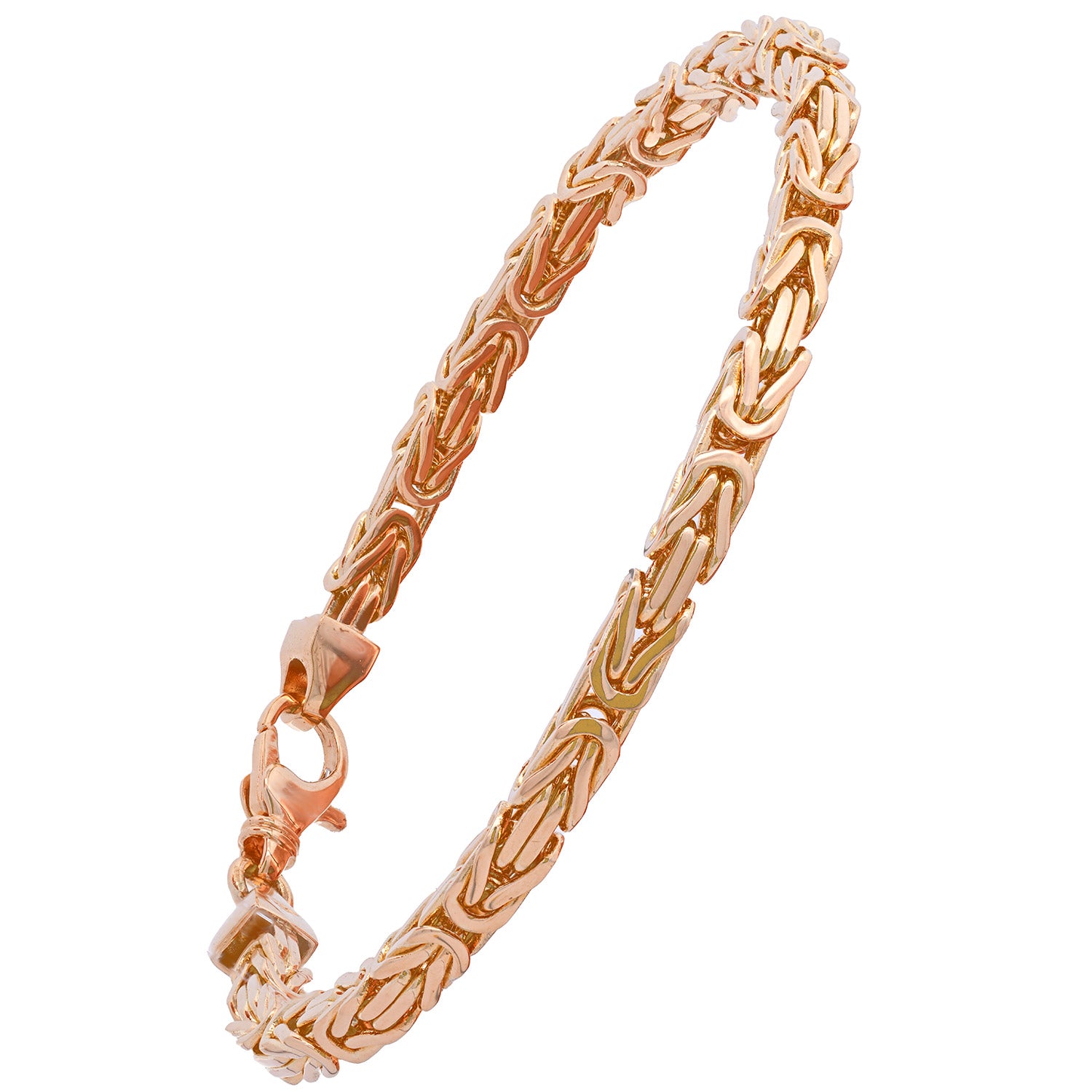 Unsere Ketten werden in Deutschland hergestellt. Bei diesen Ketten handelt es sich um eine solide, edle, massive und sehr hochwertige Ausführung mit einem Gold Feingehalt von 750 - 18 Karat Gold. Natürlich sind alle Ketten gestempelt. Diese Goldketten sind absolut präzise gearbeitet und sehr bequem zu tragen. Diese Ketten sind hochglanzpoliert für ein noch edleres Erscheinungsbild. Das Byzantinische Flechtmuster wird in Deutschland auch als Königskette bezeichnet. Die Königsketten auch Byzantinerketten genannt, werden von Männern und Frauen getragen. Die aufwändige und auffällige Flechtart dieser Kette ist Tausende von Jahren alt. Die meisten Männer bevorzugen Ketten aus klassischen Materialien wie Silber oder Gold. Die Breite der Kette und das Muster machen die Königskette beliebt bei Männern jeden Alters. Die dünneren Modelle wirken jedoch auch bei Frauen sehr stilvoll.