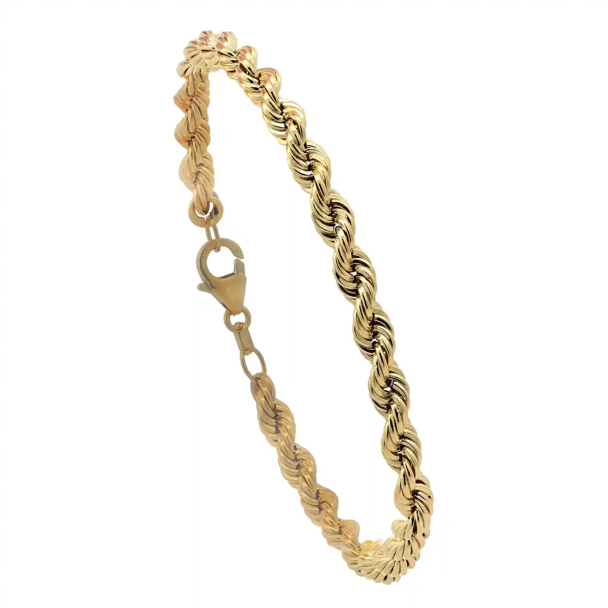 Edles Goldarmband Kordelkette hohl Armkette aus 585 - 14 Karat Gold - 4,5 mm breit - Gelbgold von höchster Qualität – Made in Germany.