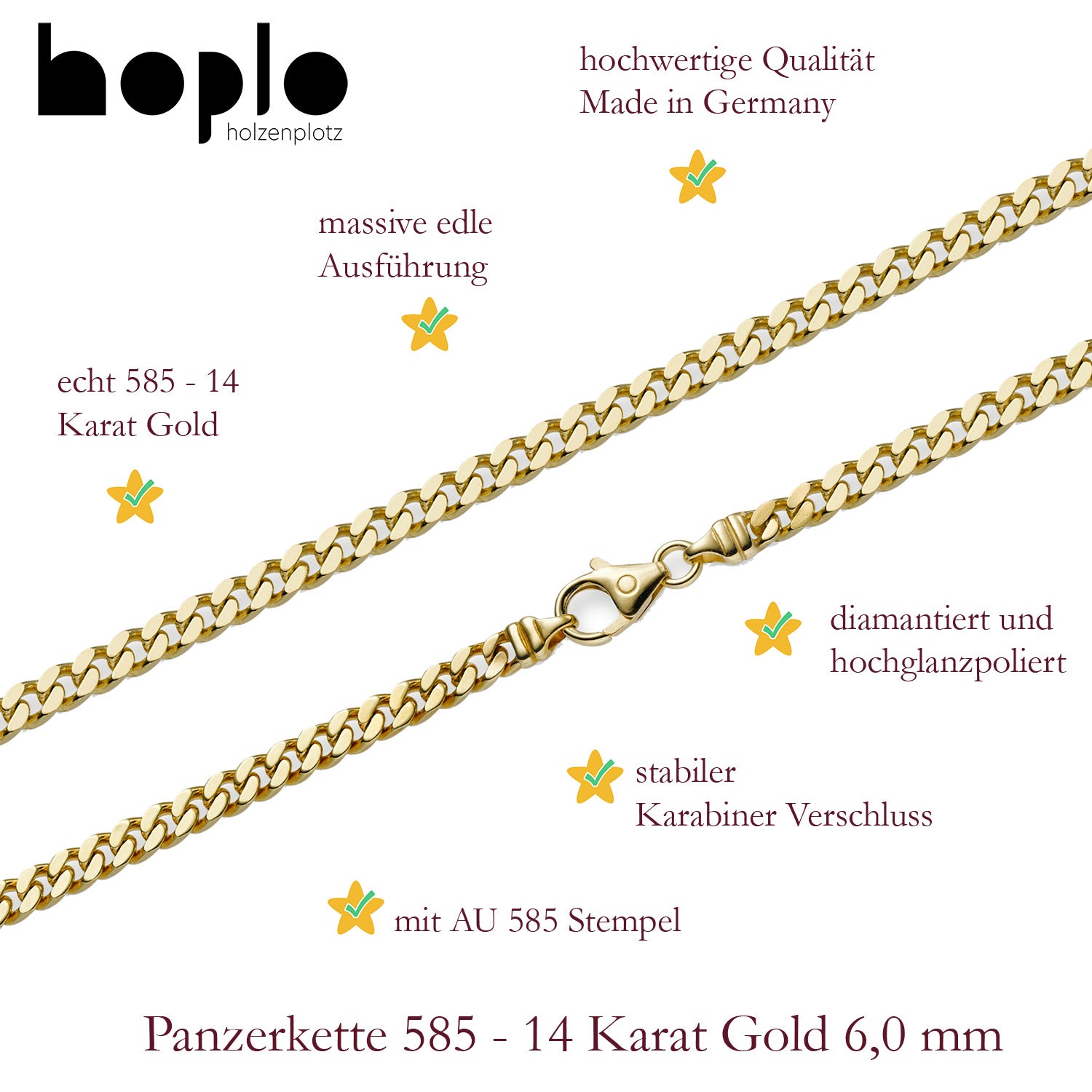 Edle massive Goldkette Panzerkette 6,0 mm Armkette aus 585 - 14 Karat Gelbgold von höchster Qualität Made in Germany.