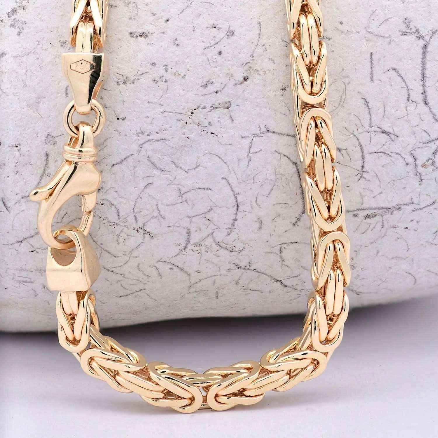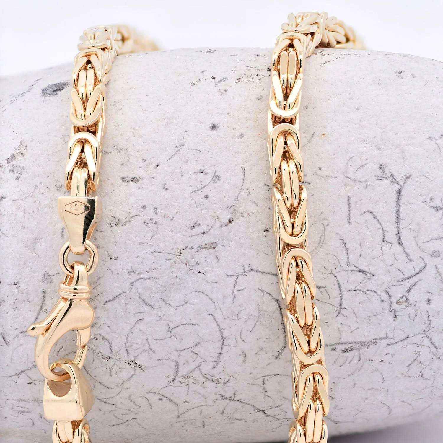 Das Byzantinische Flechtmuster wird in Deutschland auch als Königskette bezeichnet. Die Königsketten auch Byzantinerketten genannt, werden von Männern und Frauen getragen. Die aufwändige und auffällige Flechtart dieser Kette ist Tausende von Jahren alt. Die meisten Männer bevorzugen Ketten aus klassischen Materialien wie Silber oder Gold. Die Breite der Kette und das Muster machen die Königskette beliebt bei Männern jeden Alters. Die dünneren Modelle wirken jedoch auch bei Frauen sehr stilvoll.
