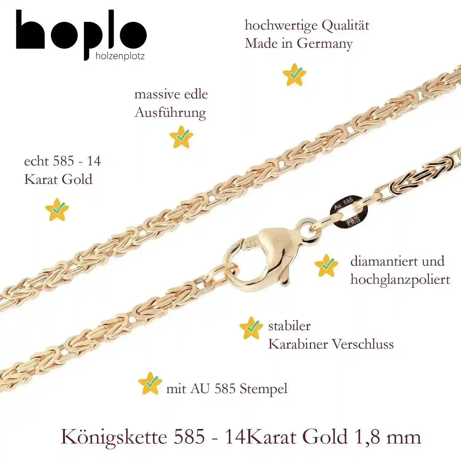 Edle massive Goldkette Königskette 1,8 mm Halskette oder Armkette aus 585 - 14 Karat Gelbgold von höchster Qualität – Made in Germany - Länge nach Wahl