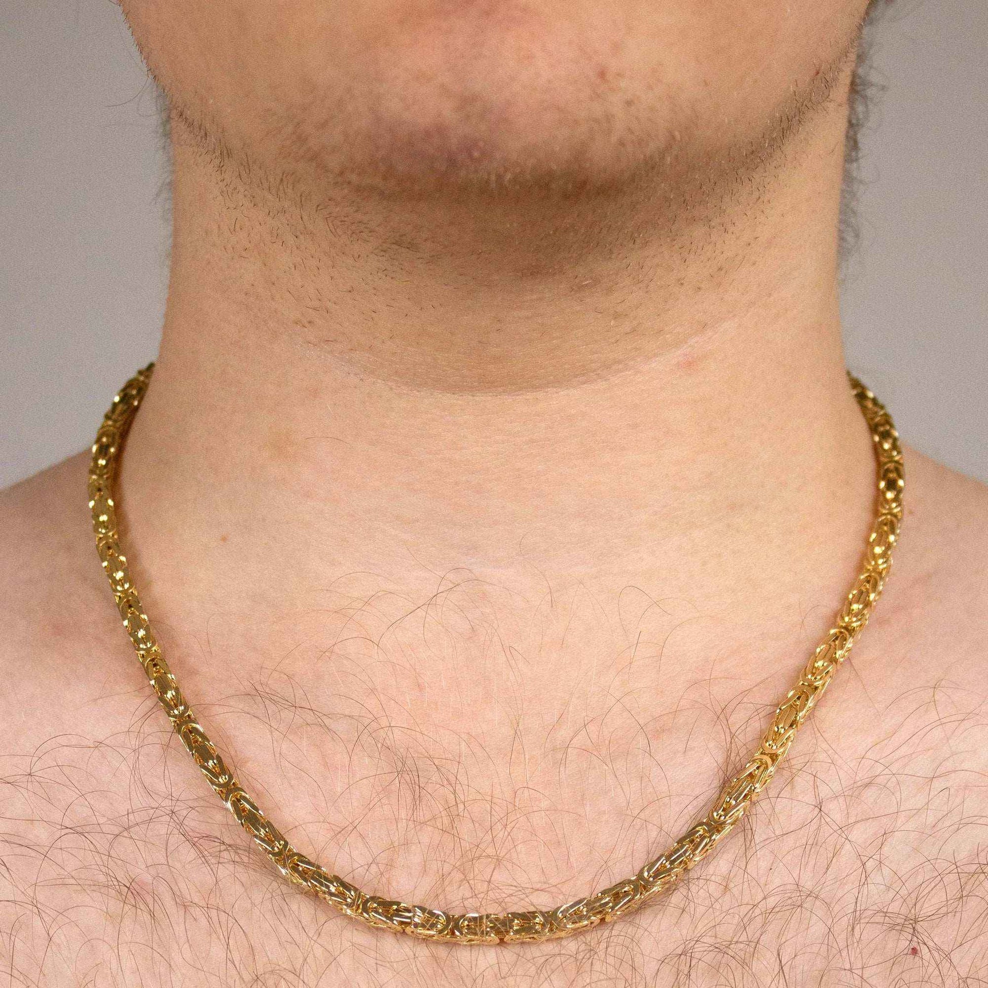 Das Byzantinische Flechtmuster wird in Deutschland auch als Königskette bezeichnet. Die Königsketten auch Byzantinerketten genannt, werden von Männern und Frauen getragen. Die aufwändige und auffällige Flechtart dieser Kette ist Tausende von Jahren alt. Die meisten Männer bevorzugen Ketten aus klassischen Materialien wie Silber oder Gold. Die Breite der Kette und das Muster machen die Königskette beliebt bei Männern jeden Alters. Die dünneren Modelle wirken jedoch auch bei Frauen sehr stilvoll.
