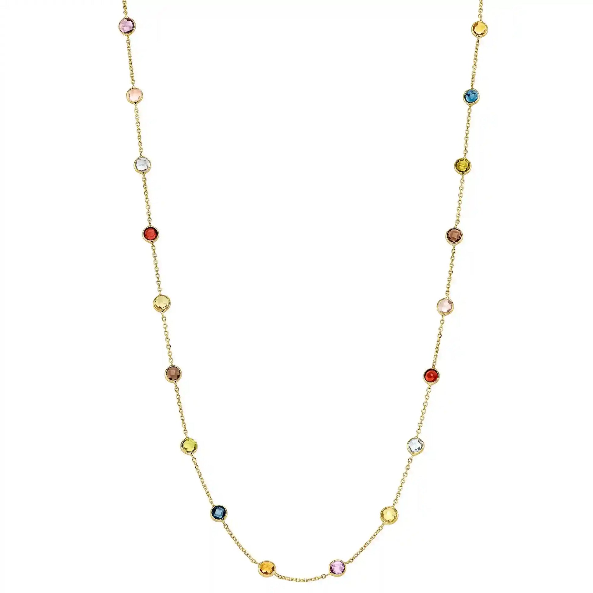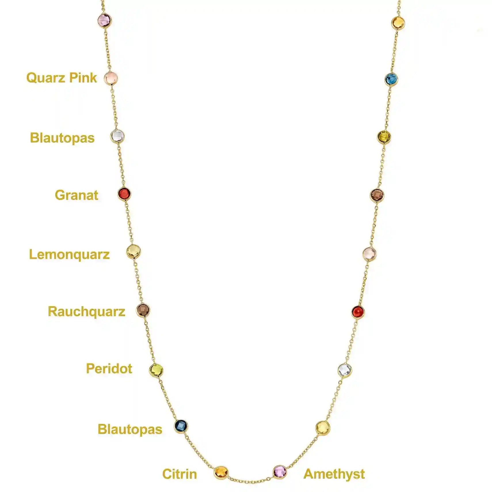 Edle massive Goldkette mit Farbsteinen aus 585 - 14 Karat Gold - 1,1 mm