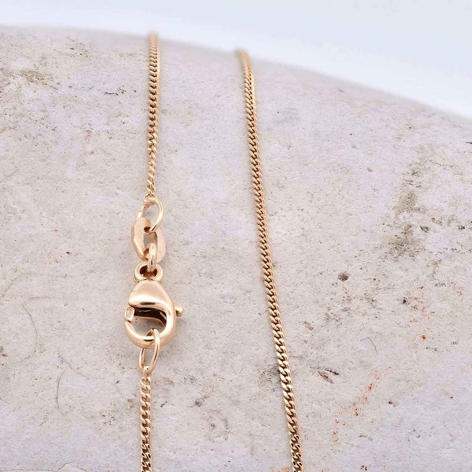 Wir scheuen uns nicht, das jeweilige ca. Gewicht in g anzugeben. Warum manche Anbieter darauf verzichten? Da Gold ein wertvolles Material ist, hängt der Herstellerpreis erheblich von der Materialstärke und vom Gewicht ab. Wenn eine Kette bei gleichen Außenmaßen leichter ist, wurde am Material gespart. Dies kann Auswirkung auf die Haltbarkeit haben. Unsere Gewichtsangaben können herstellungsbedingt + - 5% schwanken.