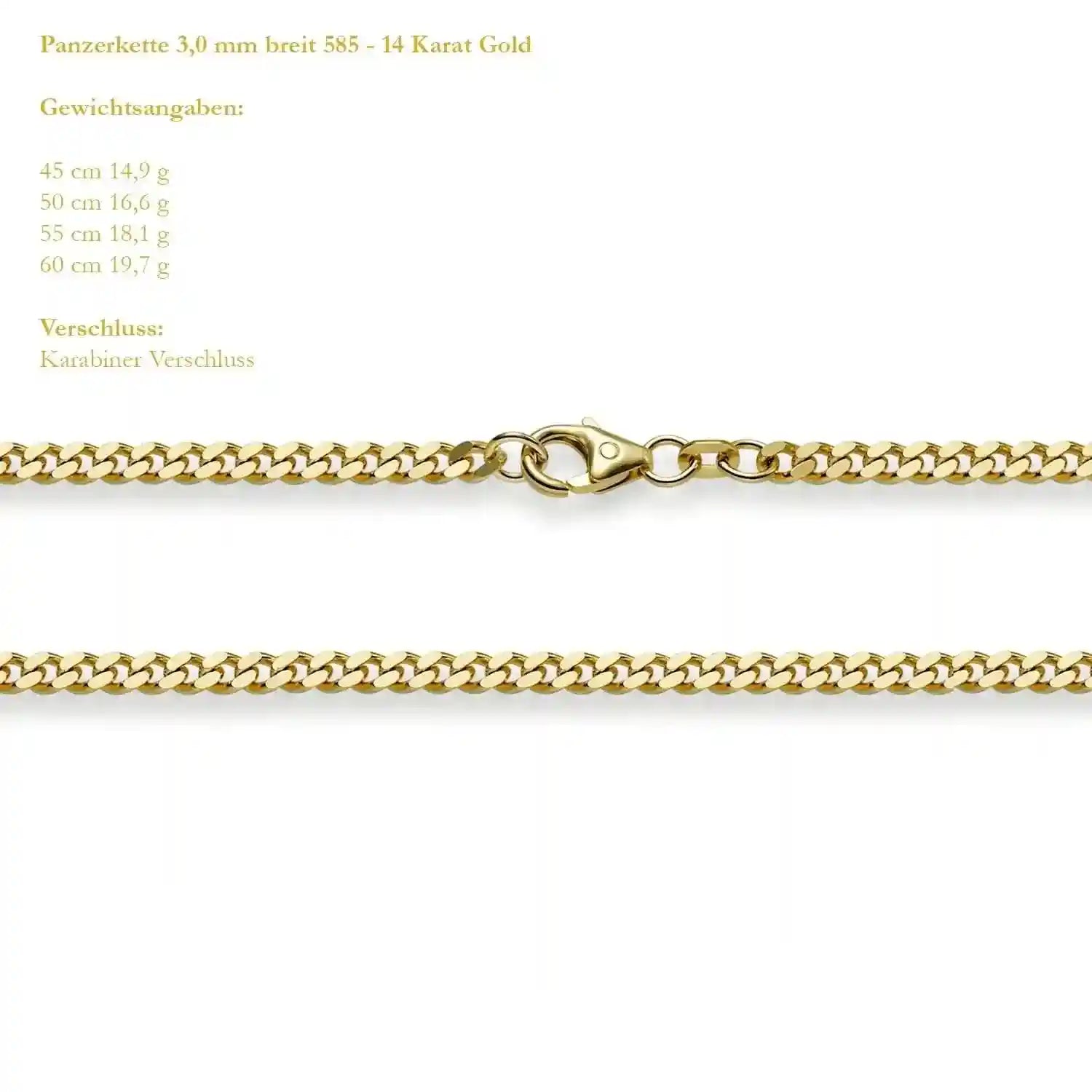 Edle massive Goldkette Panzerkette Breite 3,0 mm Halskette aus 585 - 14 Karat Gelbgold von höchster Qualität – Made in Germany.