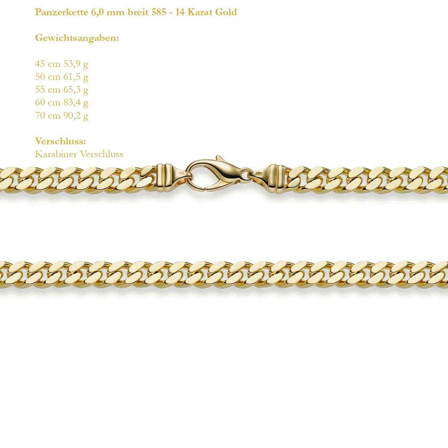 Edle massive Goldkette Panzerkette Breite 6,0 mm Halskette aus 585 - 14 Karat Gelbgold von höchster Qualität – Made in Germany.