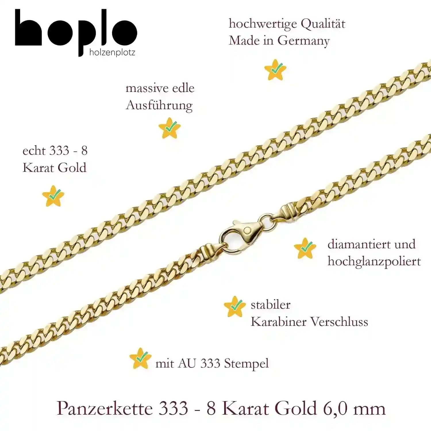 Edle massive Goldkette Panzerkette Breite 6,0 mm Halskette aus 333 - 8 Karat Gelbgold von höchster Qualität – Made in Germany.