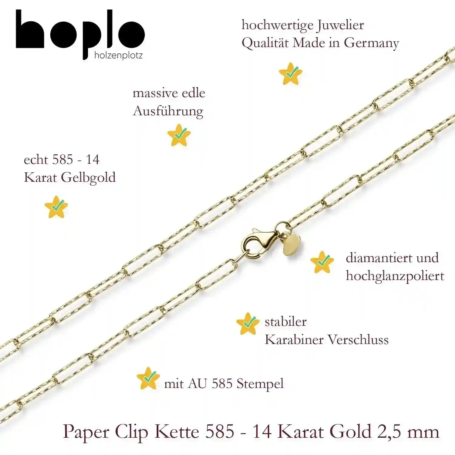 Edle massive Goldkette Paper Clip Kette aus 585 - 14 Karat Gold - 2,5 mm breit - Gelbgold von höchster Qualität – Made in Germany.