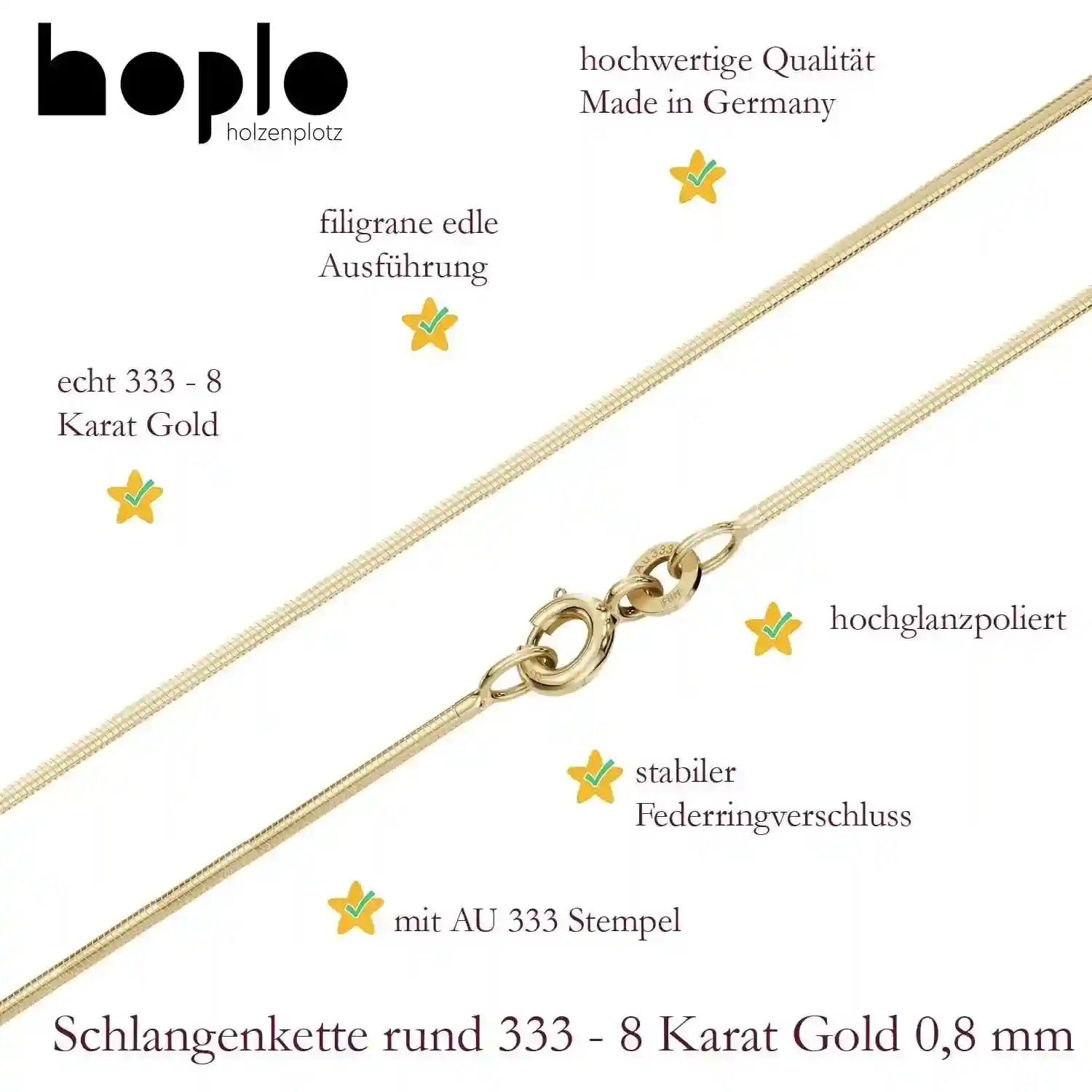 Edle massive Goldkette Schlangenkette rund 0,8 mm Halskette aus 333 - 8 Karat Gelbgold von höchster Qualität – Made in Germany - Länge nach Wahl