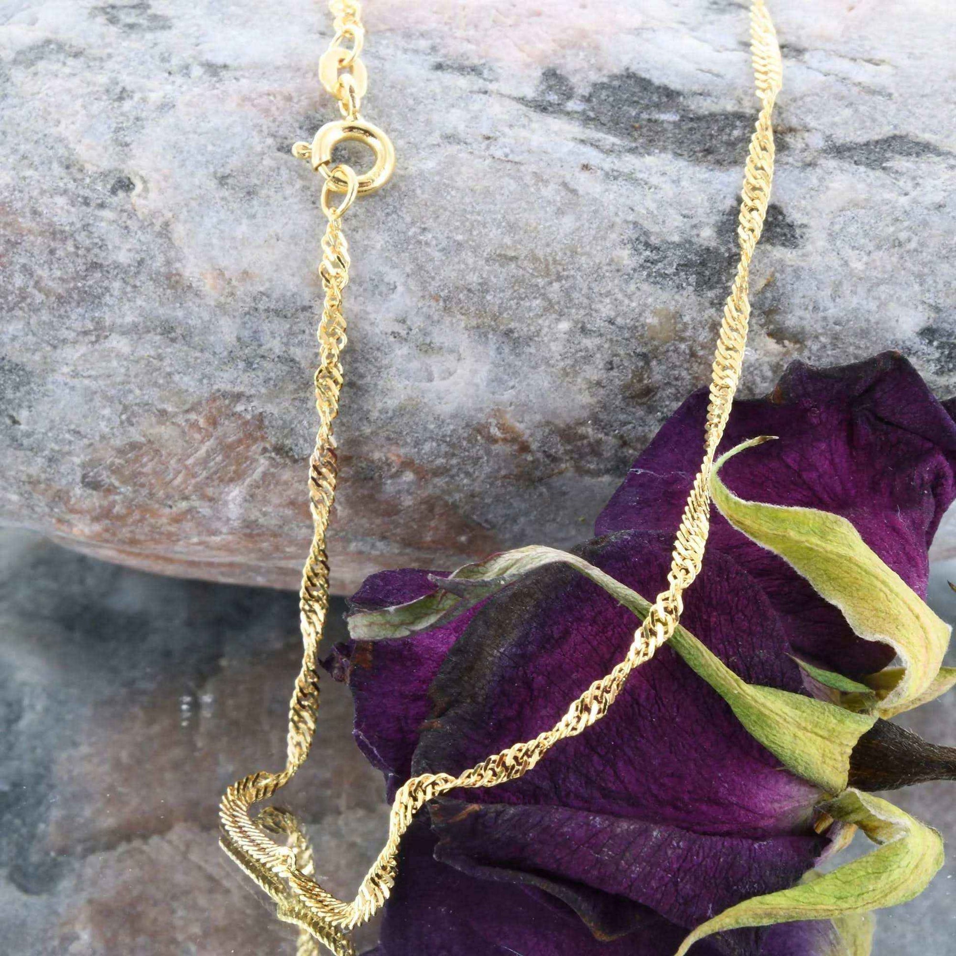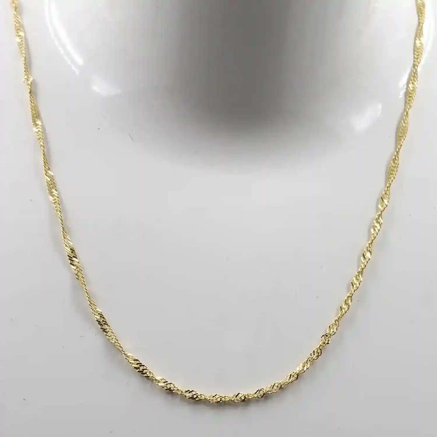Die Singapurkette ist eine sehr exclusiv wirkende gedrehte Halskette. Sie wird meist von Frauen getragen, und kann mit oder ohne Anhänger verwendet werden. Das Licht wird bei der Singapurkette aus allen Richtungen reflektiert wodurch diese Kette besonders elegant funkelt. Sie wird deshalb gerne zu besonderen Anlässen getragen.