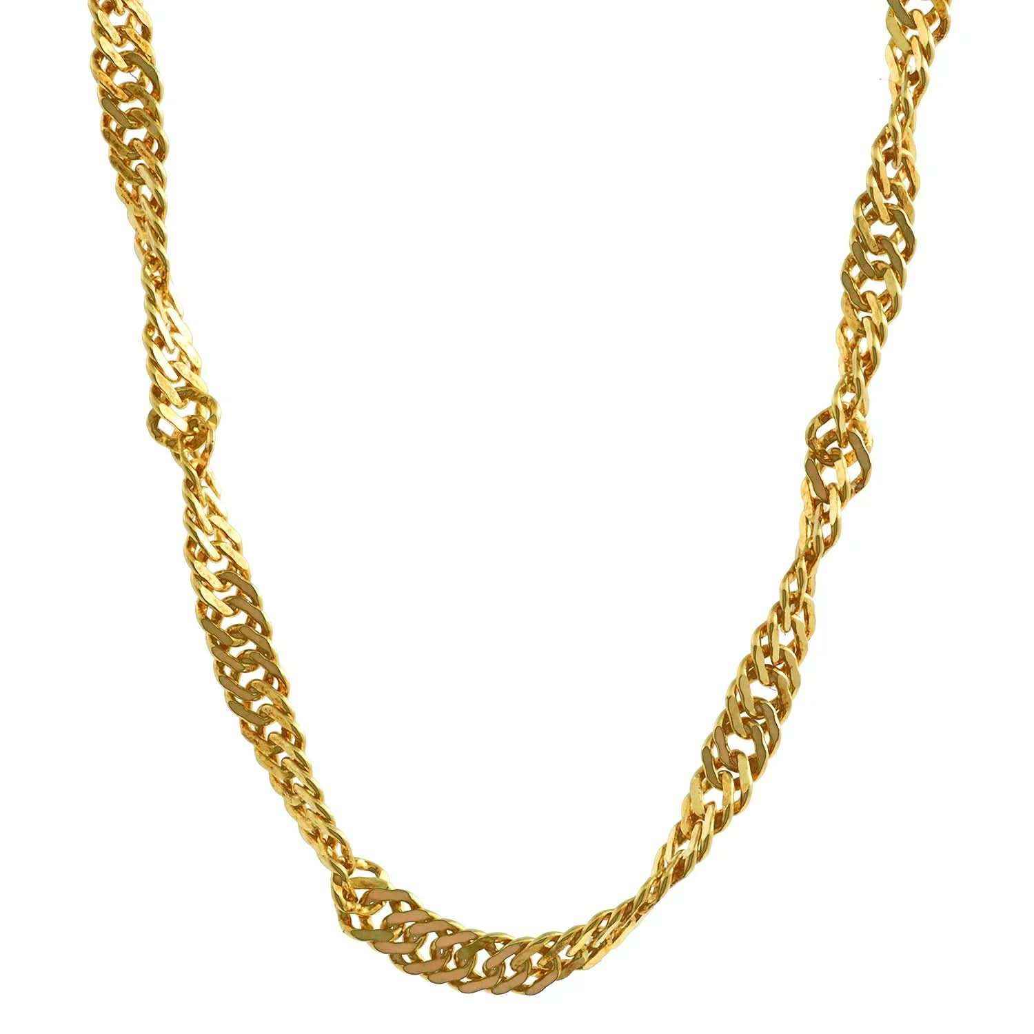 Die Singapurkette ist eine sehr exclusiv wirkende gedrehte Halskette. Sie wird meist von Frauen getragen, und kann mit oder ohne Anhänger verwendet werden. Das Licht wird bei der Singapurkette aus allen Richtungen reflektiert wodurch diese Kette besonders elegant funkelt. Sie wird deshalb gerne zu besonderen Anlässen getragen.